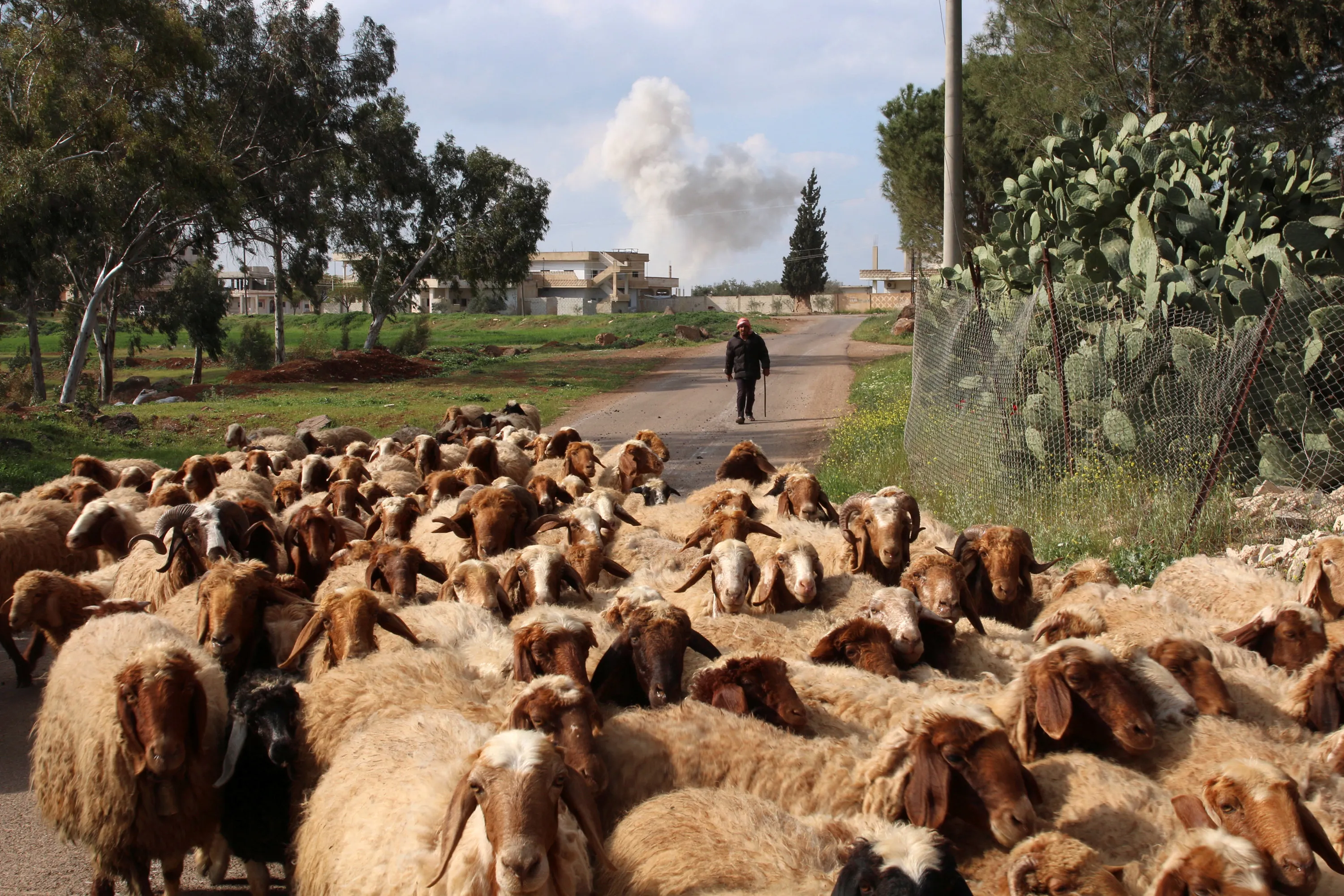 Smoke rises while a man herds sheep after an airstrike on rebel-held Daraa Al-Balad, Syria April 7, 2017. (Photo by Alaa Al-Faqir/Reuters)