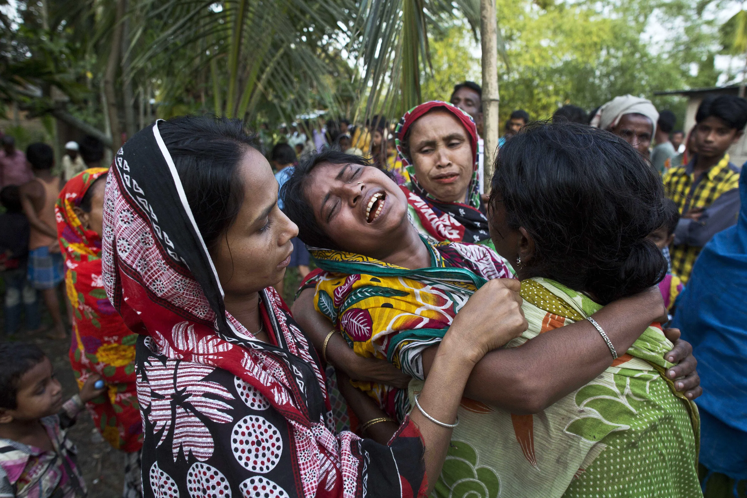Relatives of Abu Hanif, who was beaten to death by a mob on Sunday night, wail during his funeral in Naramari village, about 140 kilometers east of Gauhati, in the northeastern Indian state of Assam, Monday, May 1, 2017. Two Muslim men, including Hanif, were beaten to death by a mob in northeastern India over allegations of cow theft, the latest in a series of similar attacks across the country, police officials said Monday. Human Rights Watch said in a report last week that since Prime Minister Narendra Modi's government took office at least 10 Muslims, including a 12-year-old boy, have been killed in mob attacks in seven separate incidents related to allegations over cows. (Photo by Anupam Nath/AP Photo)