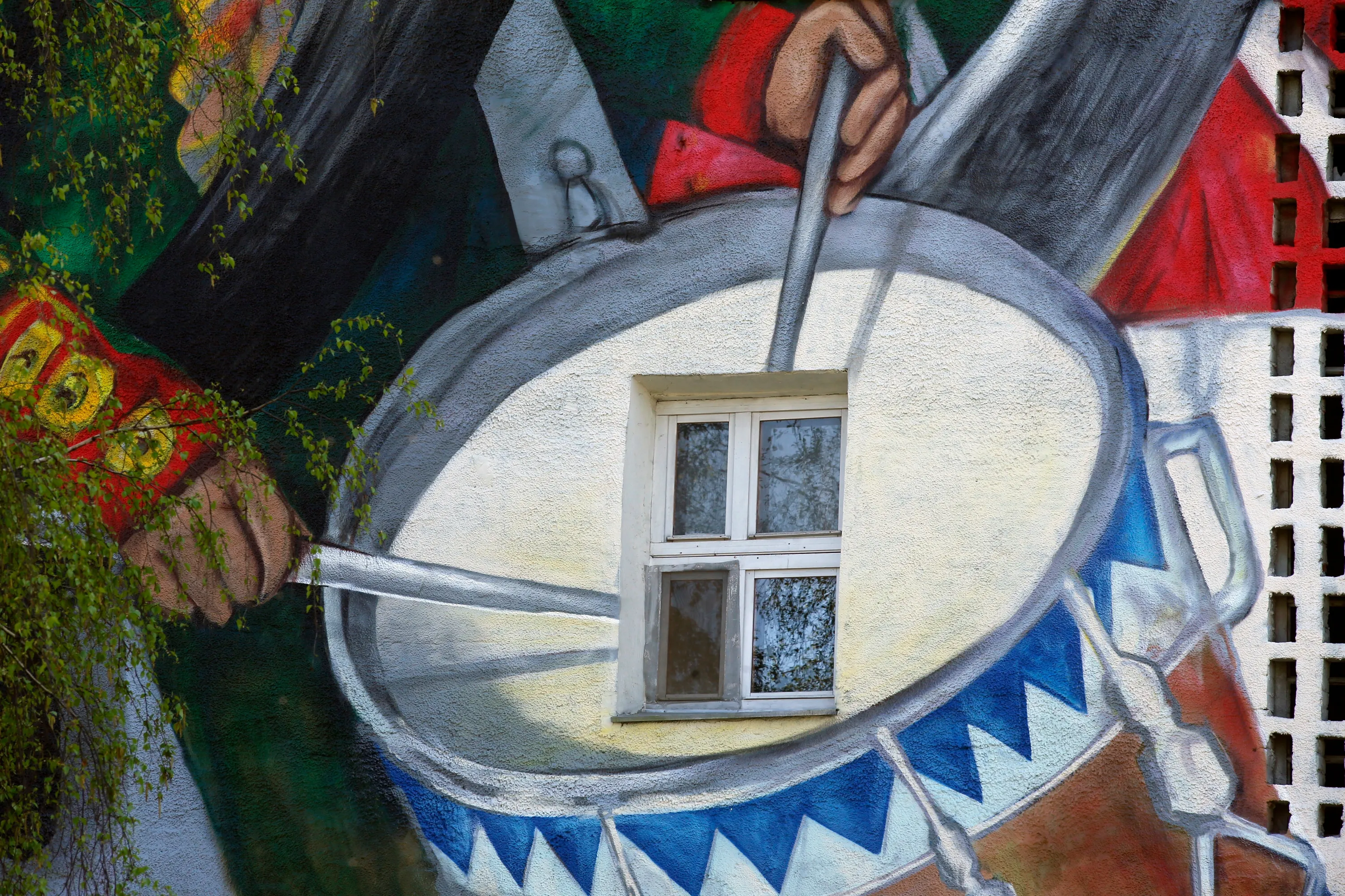 View of part of a huge graffiti showing Russian army commander Mikhail Kutuzov (1745-1813) that decorates a wall of an old residential house in the center of Moscow, Russia, 03 May 2017. The 400 square meters artwork is a project of the Russian Military Historical Society. Prince Mikhail Illarionovich Golenishchev-Kutuzov was the Commander-in-Chief of the Imperial Russian Army who was credited of winning the Patriotic War of 1812-1813 against Napoleon. (Photo by Sergei Chirikov/EPA)