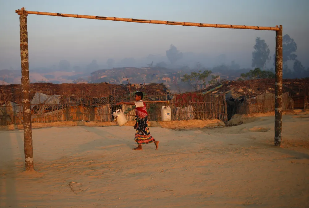 A Rohingya refugee boy carries water at Kutupalang Unregistered Refugee Camp in Cox’s Bazar, Bangladesh, February 6, 2017. (Photo by Mohammad Ponir Hossain/Reuters)
