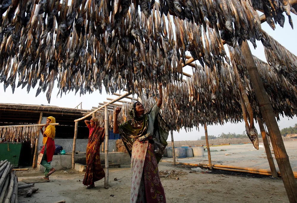 Bangladeshi women work in a dry fish processing yard in Cox's Bazar, Bangladesh April 13, 2017. (Photo by Mohammad Ponir Hossain/Reuters)