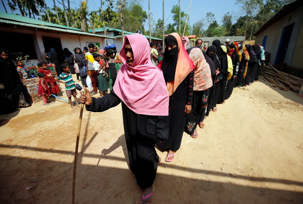 Rohingya refugees wait in a queue to collect relief, including food and medicine, sent from Malaysia at Kutupalang Unregistered Refugee Camp in Cox’s Bazar, Bangladesh, February 15, 2017. (Photo by Mohammad Ponir Hossain/Reuters)