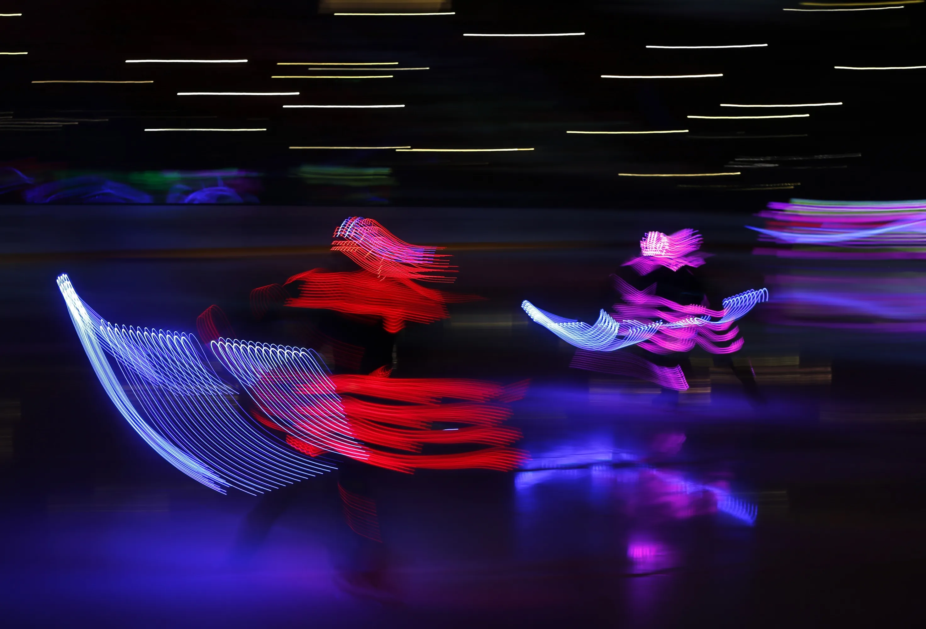 Actors perform before a gala match of the Night Hockey League teams in the Bolshoy Ice Arena in the Black Sea resort of Sochi, Russia, Wednesday, May 10, 2017. (Photo by Yuri Kochetkov/Pool Photo via AP Photo)