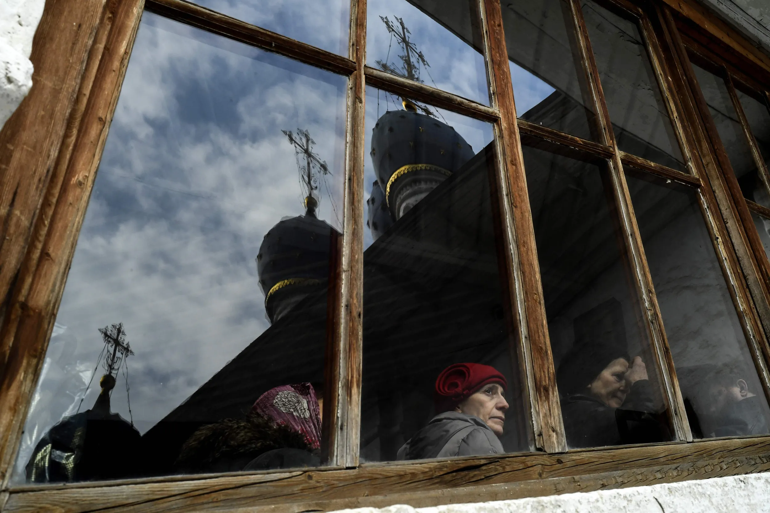 Russian Orthodox believers attend a religious service marking 100 years since the abdication of the last Tsar Nicholas II at a cathedral in Moscow's Kolomenskoye park on March 15, 2017. Nicholas II abdicated on March 2, 1917, or March 15 by the current calendar, after the February Revolution in Saint Petersburg, when troops mutinied as protestors demanded bread and condemned tsarism. (Photo by Kirill Kudryavtsev/AFP Photo)