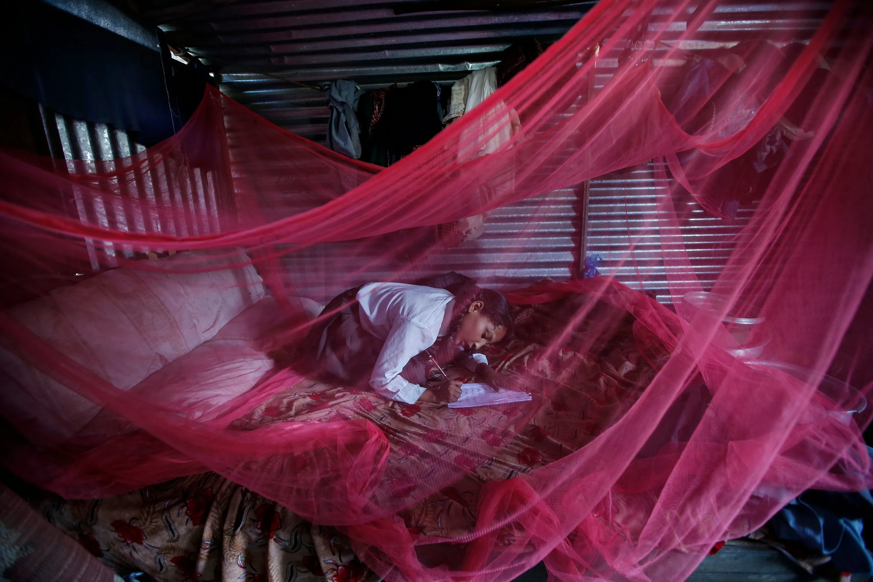 Third grade Nepalese schoolgirl Sachina Prajapati, aged 11, does her home work at her temporary shelter in Bhaktapur, Nepal, 24 April 2017. The people in Bhaktapur still live in temporary shelters after loosing their homes and family members in the earthquake of April 2015. Nepal marks the second anniversary of the quake that left over 8,000 people dead and more than 21,000 injured on 25 April 2015. (Photo by Narendra Shrestha/EPA)