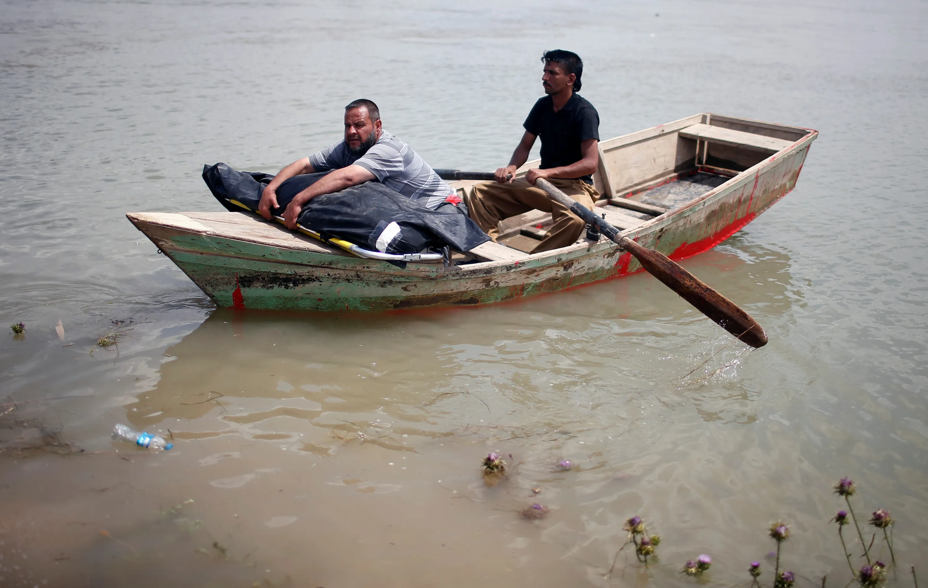 A displaced Iraqi holds the body of his wife, who was killed during the fighting in Mosul, on a boat sailing to cross the Tigris River after the bridge has been temporarily closed, in western Mosul, Iraq May 6, 2017. (Photo by Suhaib Salem/Reuters)
