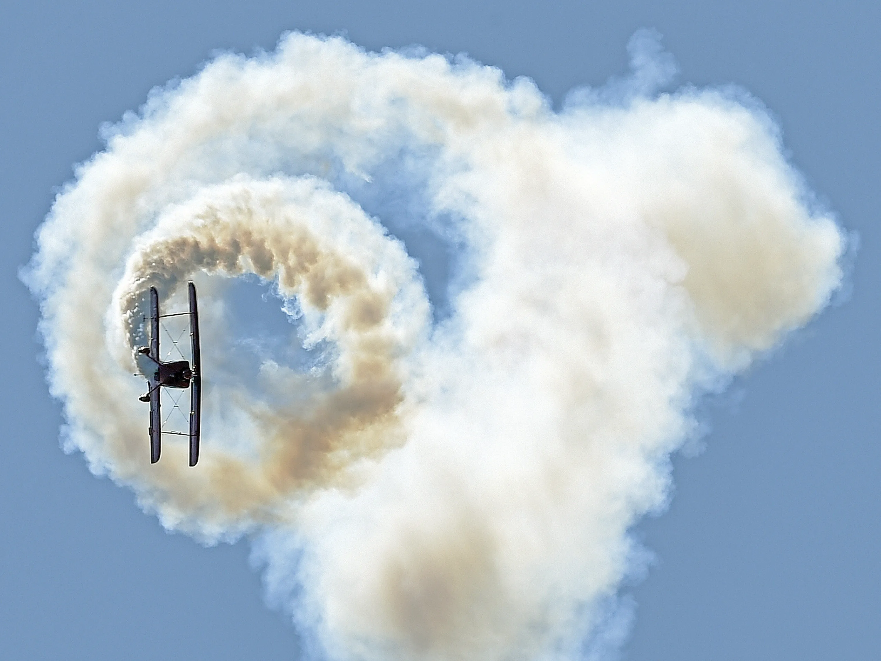 Aerobatic pilot Sean D. Tucker takes his Oracle Challenger III biplane through its paces during rehearsals for the 2017 Rhode Island National Guard Open House Air Show, Friday, May 19, 2017, at Quonset State Airport in North Kingstown, R.I. Shows will be Saturday and Sunday from 10 a.m. to 4 p.m. with a variety of aerial acts and static displays. Admission is free to the event with a $10 donation to Hasbro Children's Hospital requested for parking. (Photo by Sean D. Elliot/The Day via AP Photo)