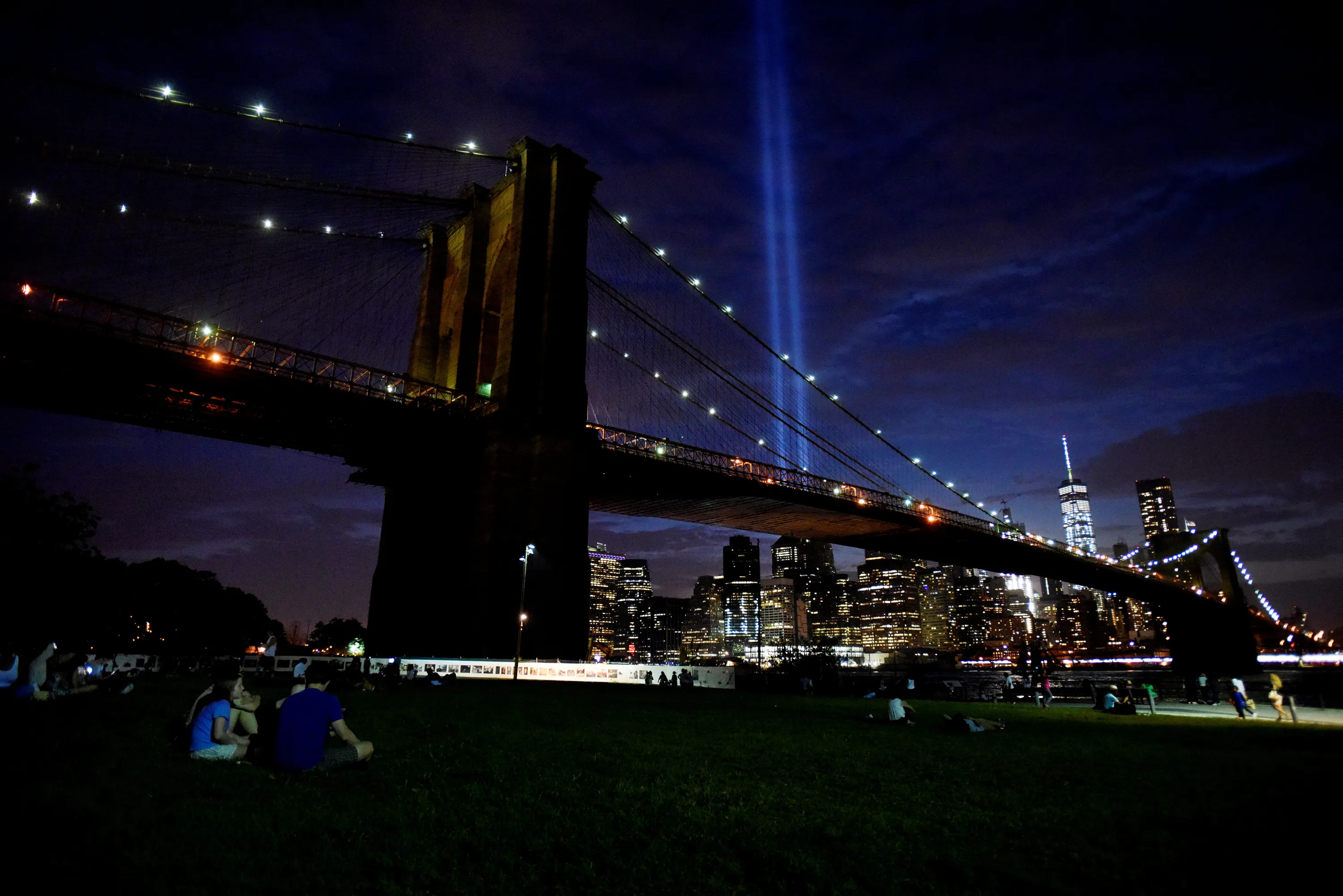 The Tribute in Light memorial is seen in the Manhattan skyline from Brooklyn Bridge Park in Brooklyn, New York, September 10, 2016. (Photo by Mark Kauzlarich/Reuters)