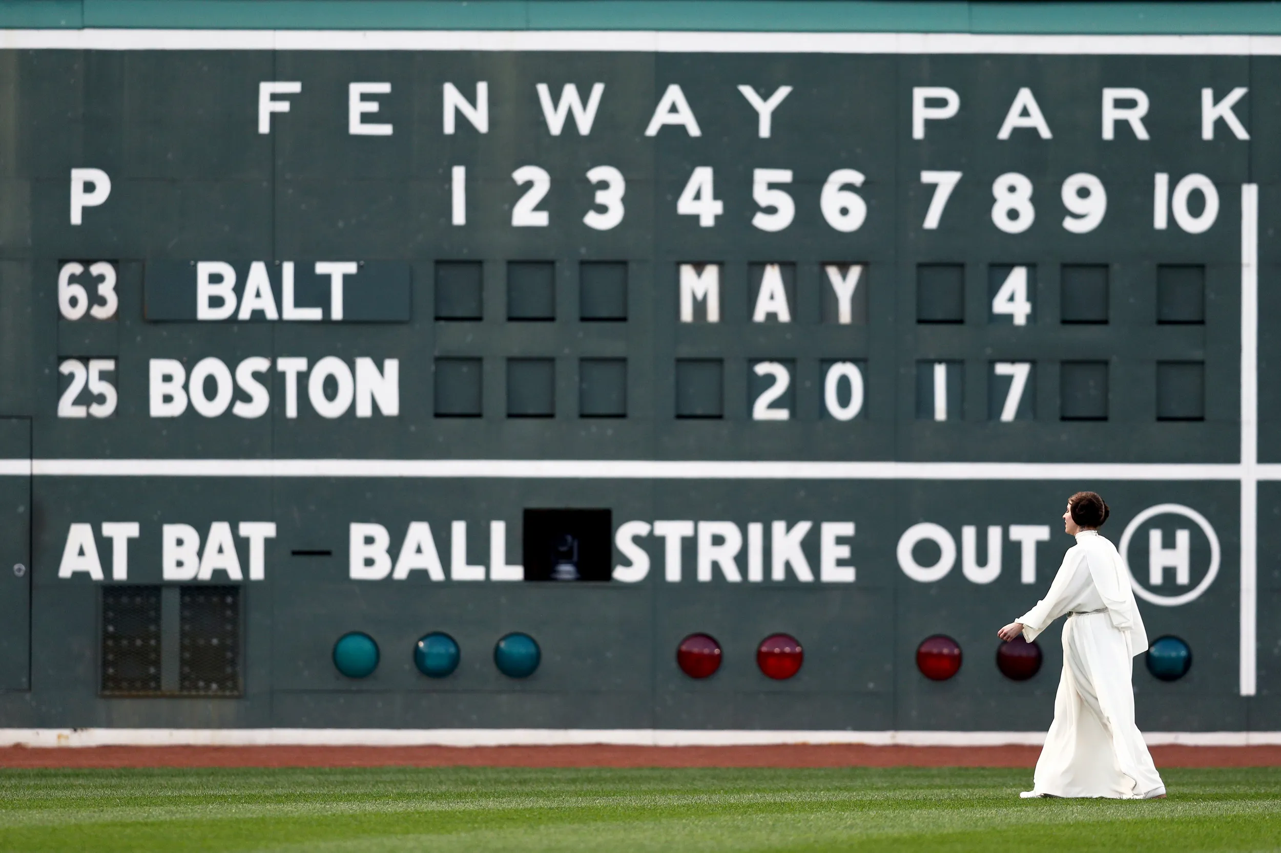 A woman dressed as Princess Leia from the Star Wars franchise walks in front of the Green Monster as part of Star Wars day at Fenway Park before the game between the Boston Red Sox and the Baltimore Orioles on May 4, 2017 in Boston, Massachusetts. (Photo by Maddie Meyer/Getty Images)