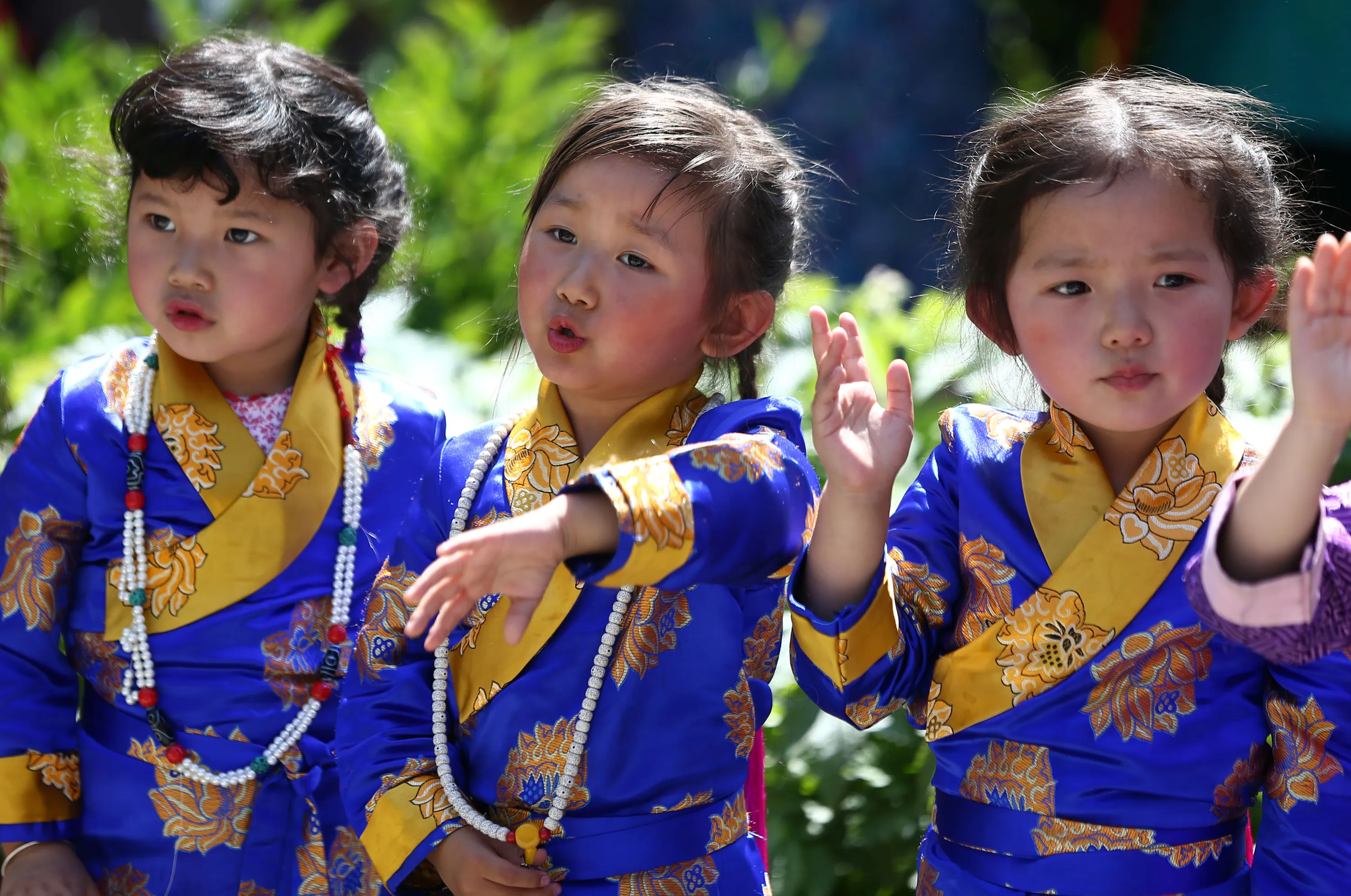 Children sing as Buddhist leader The Karmapa Ogyen Trinley Dorje takes part in a ceremony to bless the Peace Monument at the Imperial War Museum in London, Britain May 22, 2017. (Photo by Neil Hall/Reuters)