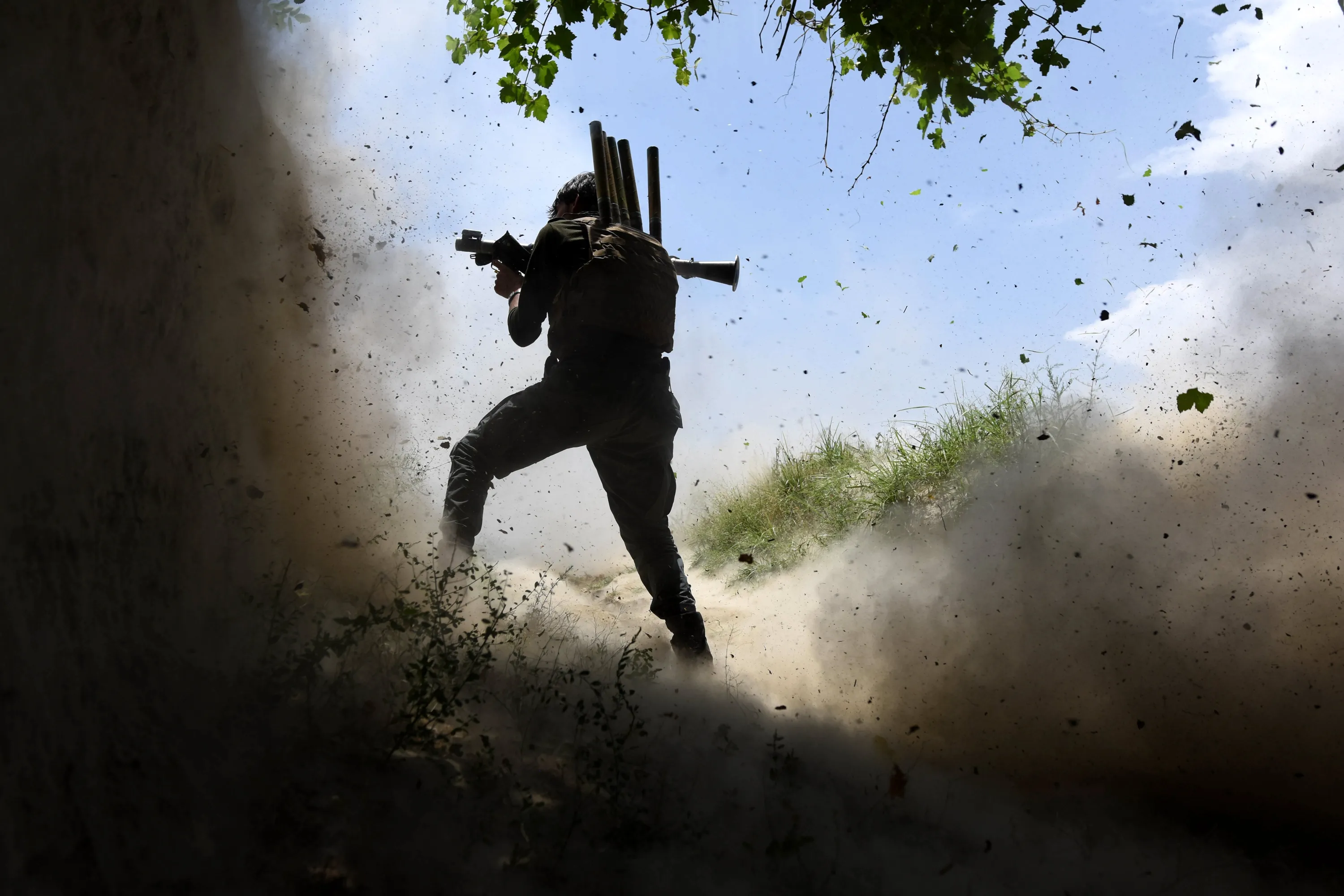 Afghan Army soldier uses his weapon among smoke and rubble after an attack by IS militants in Chapahar district of Nangarhar district, Afghanistan, 21 May 2017. Nangarhar, bordering Pakistan, is one of the most turbulent regions of Afghanistan and a stronghold of the Islamic State, as well as having a significant presence of the Taliban group. Since the end of NATO's combat mission in January 2015, insurgents have been gaining ground in various parts of Afghanistan and currently control, influence or are fighting the government in at least 43 percent of the territory, according to data from the United States. (Photo by Ghulamullah Habibi/EPA)