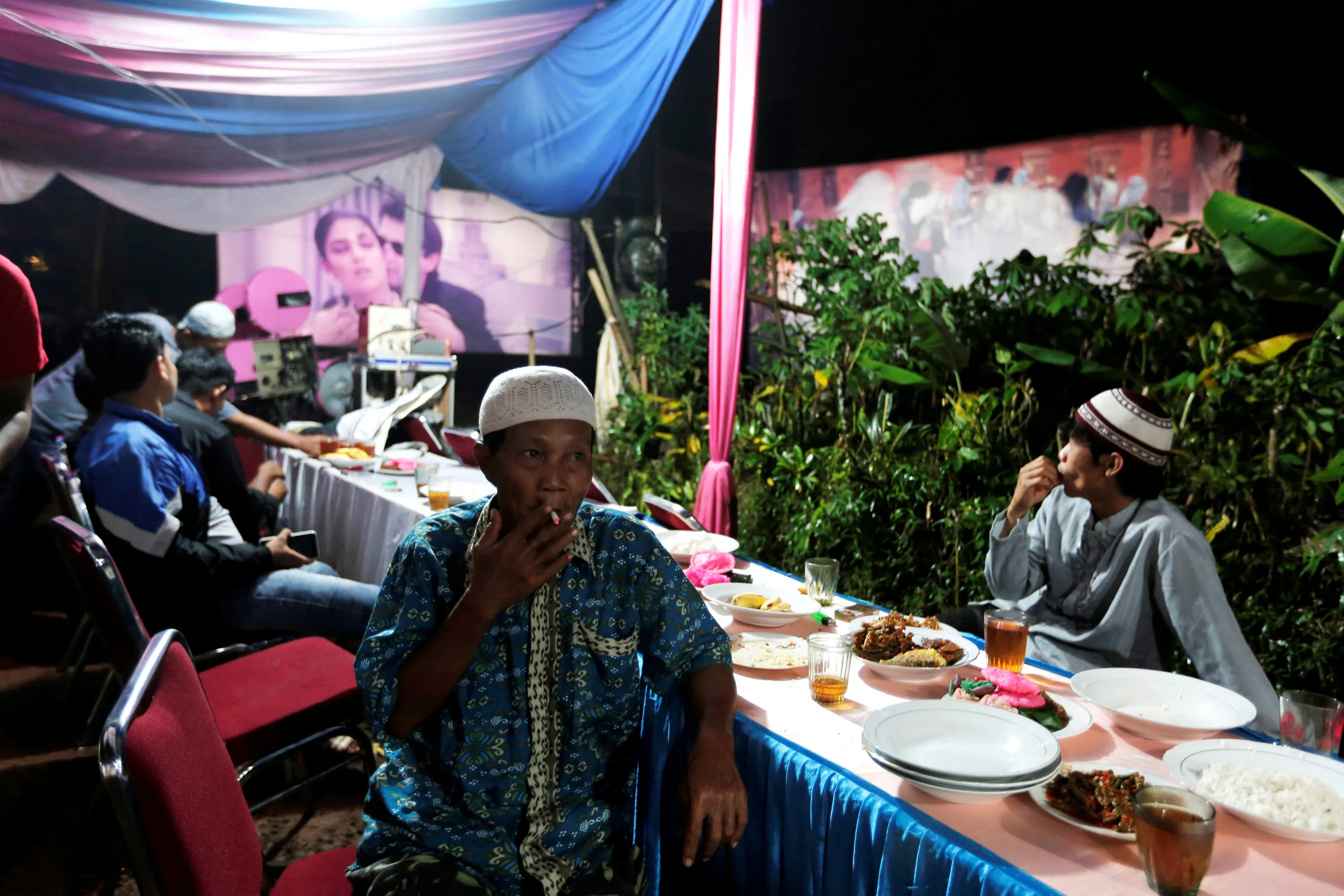 Villagers watch films during a wedding party in Bogor, Indonesia, May 2, 2017. (Photo by Reuters/Beawiharta)