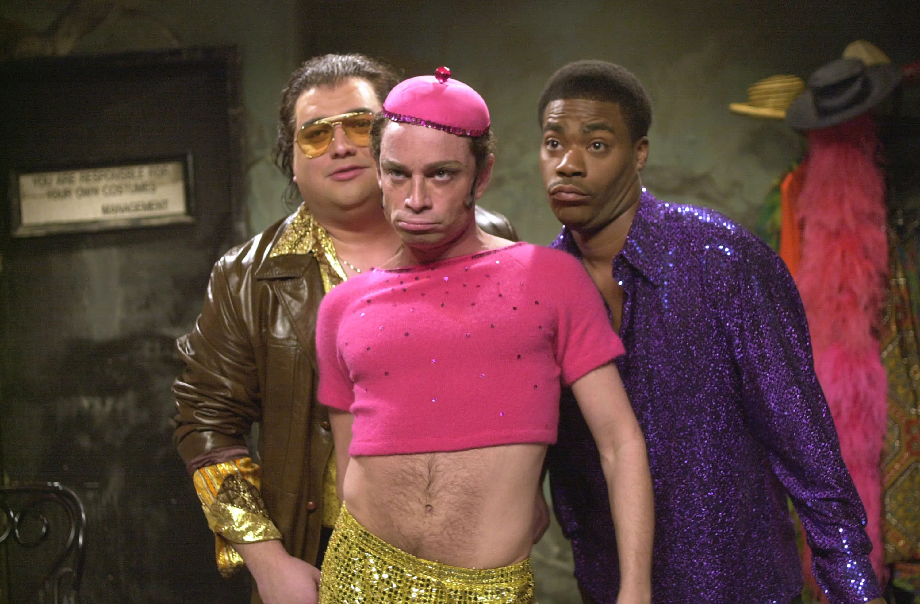 Pictured: (L-R) Horatio Sanz as Harvey, Chris Kattan as Mango, Tracy Morgan as the stylist during the “Mango & Gwyneth” skit on November 10, 2001. (Photo by Dana Edelson/NBC/NBCU Photo Bank via Getty Images)