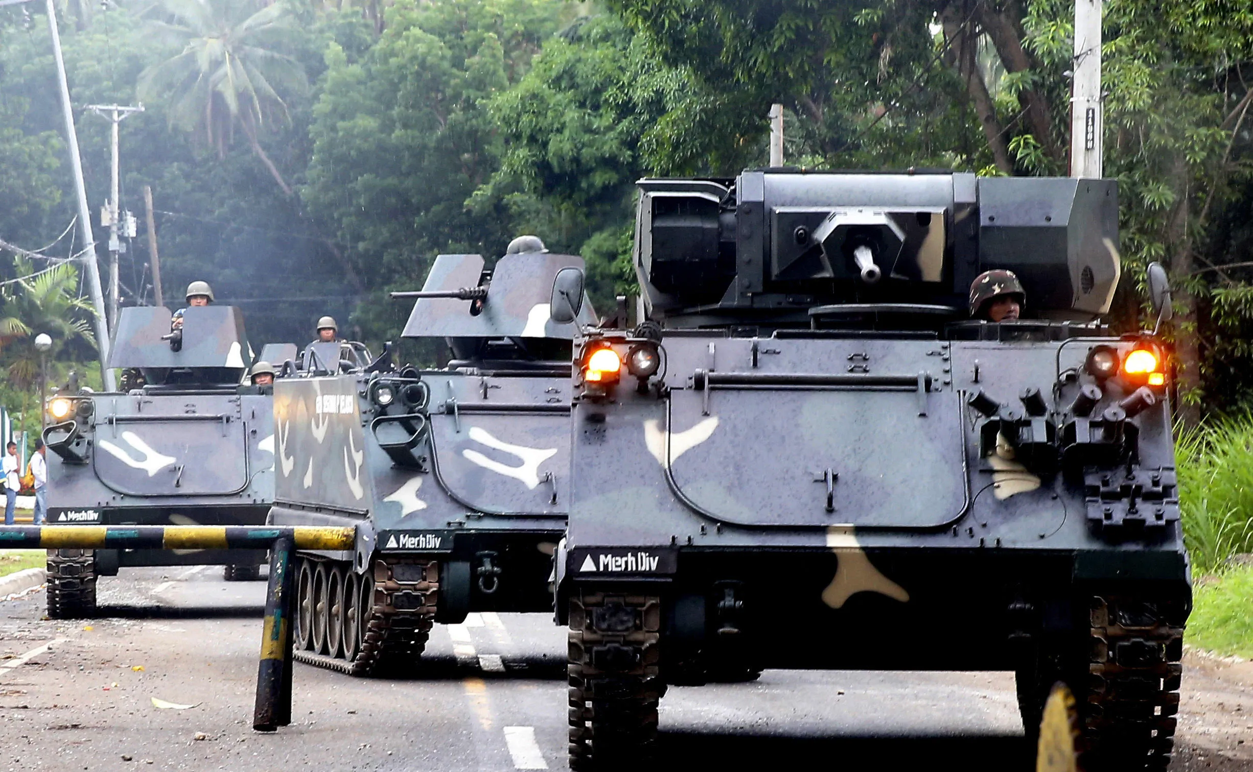 Tanks arrive at a military camp in Iligan city to reinforce Government troops who are battling Muslim militants who laid siege in Marawi city for over a week now Wednesday, May 31, 2017 in southern Philippines. Fighting continues for the second week now between Government troops and Muslim militants with casualties on both side and civilians. (Photo by Bullit Marquez/AP Photo)