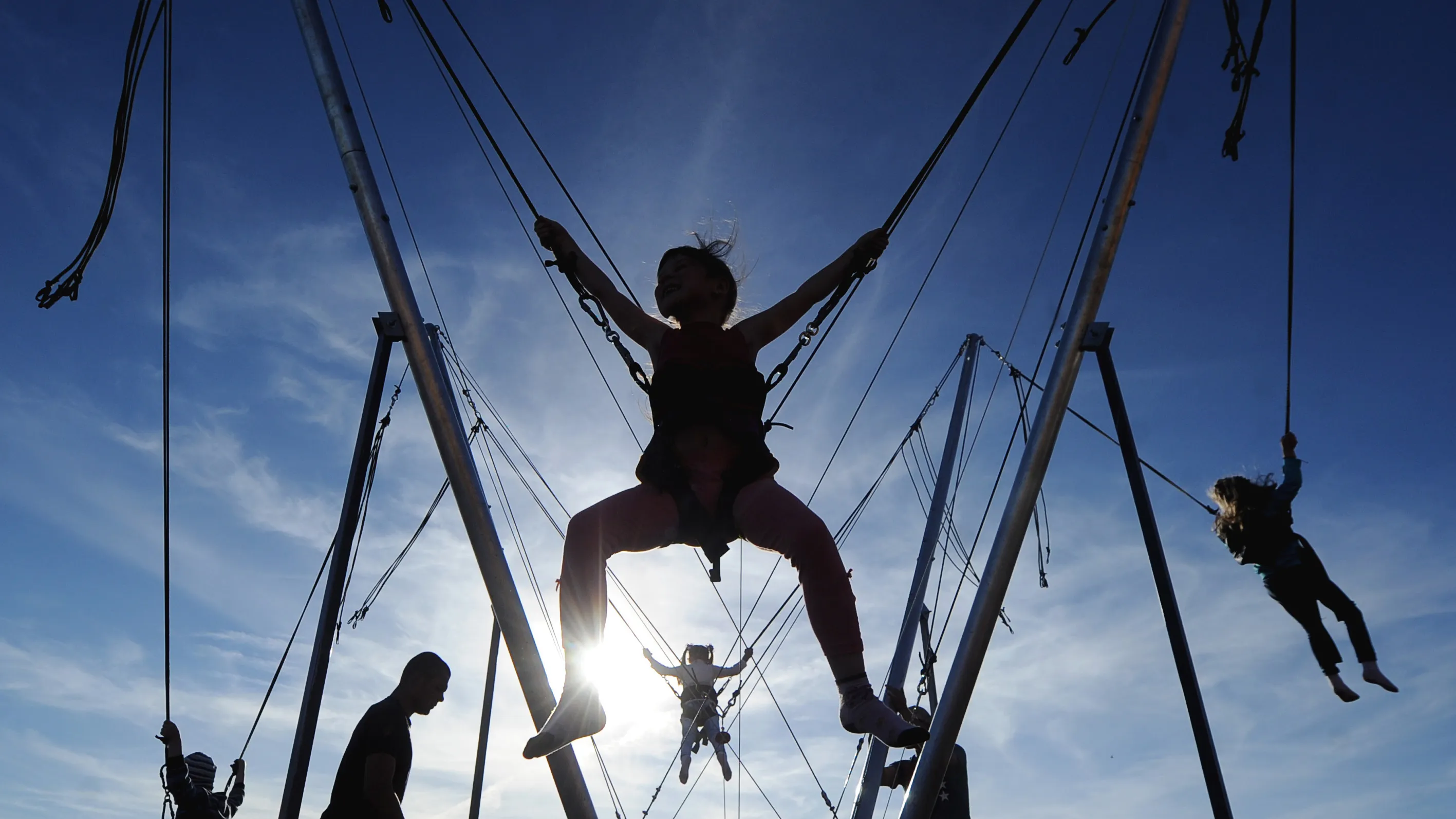 Children jump on a trampoline in the town of Ruzhany, during a festival of traditional culture in the town of Ruzhany, some 250 km southwest of Minsk on June 3, 2017. (Photo by Sergei Gapon/AFP Photo)