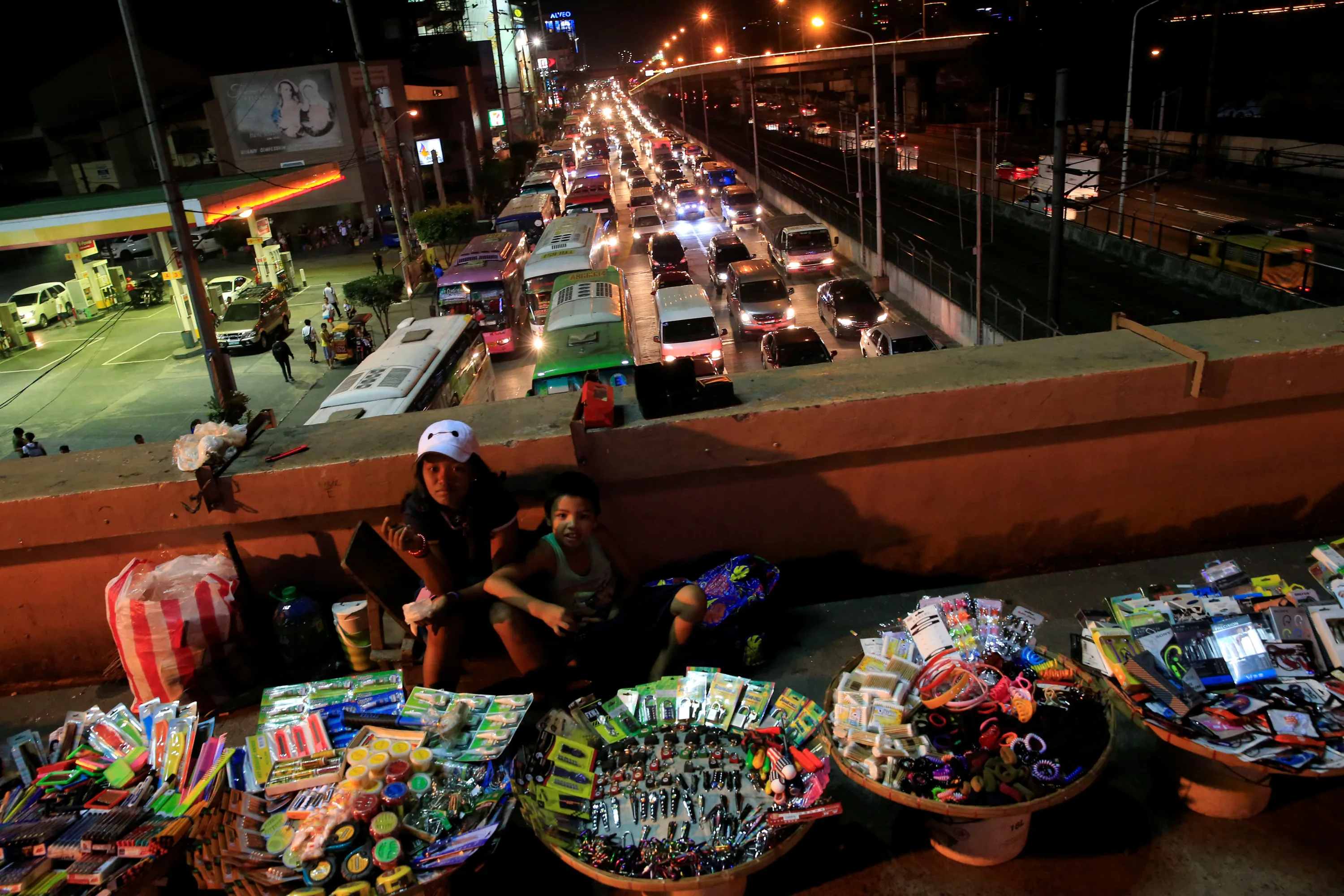 Vendors display their assorted items for sale at a sidewalk of a bridge where heavy traffic is seen on a busy road, in Metro Manila, Philippines December 23, 2016. (Photo by Romeo Ranoco/Reuters)