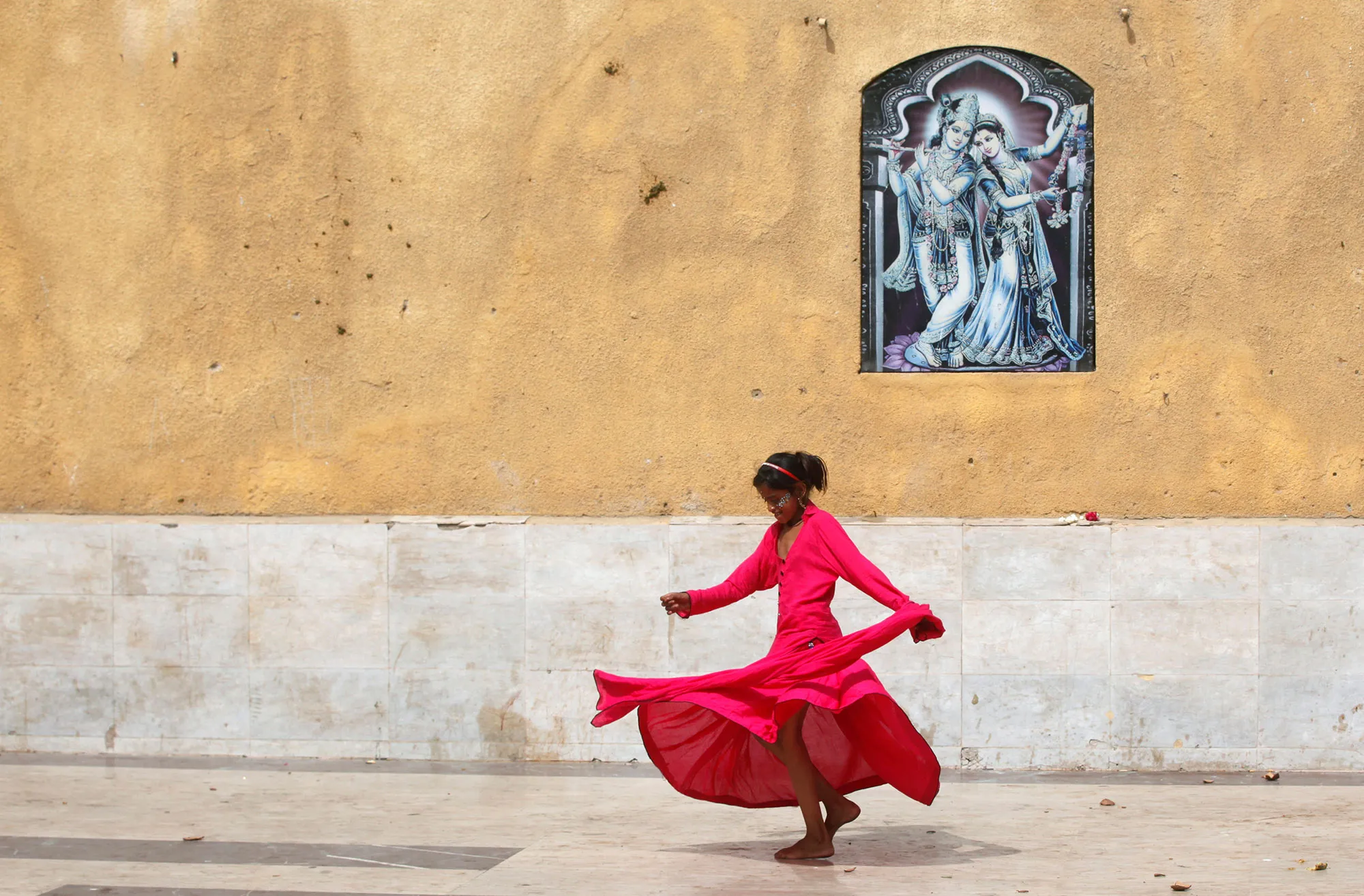 A Pakistani Hindu devotee girl plays near a wall adorned with a religious image, before leaving with her family for homage to Hinglaj Mata Temple in Balochistan, outside the Shri Swaminarayan Temple in Karachi, Pakistan April 28, 2017. (Photo by Akhtar Soomro/Reuters)