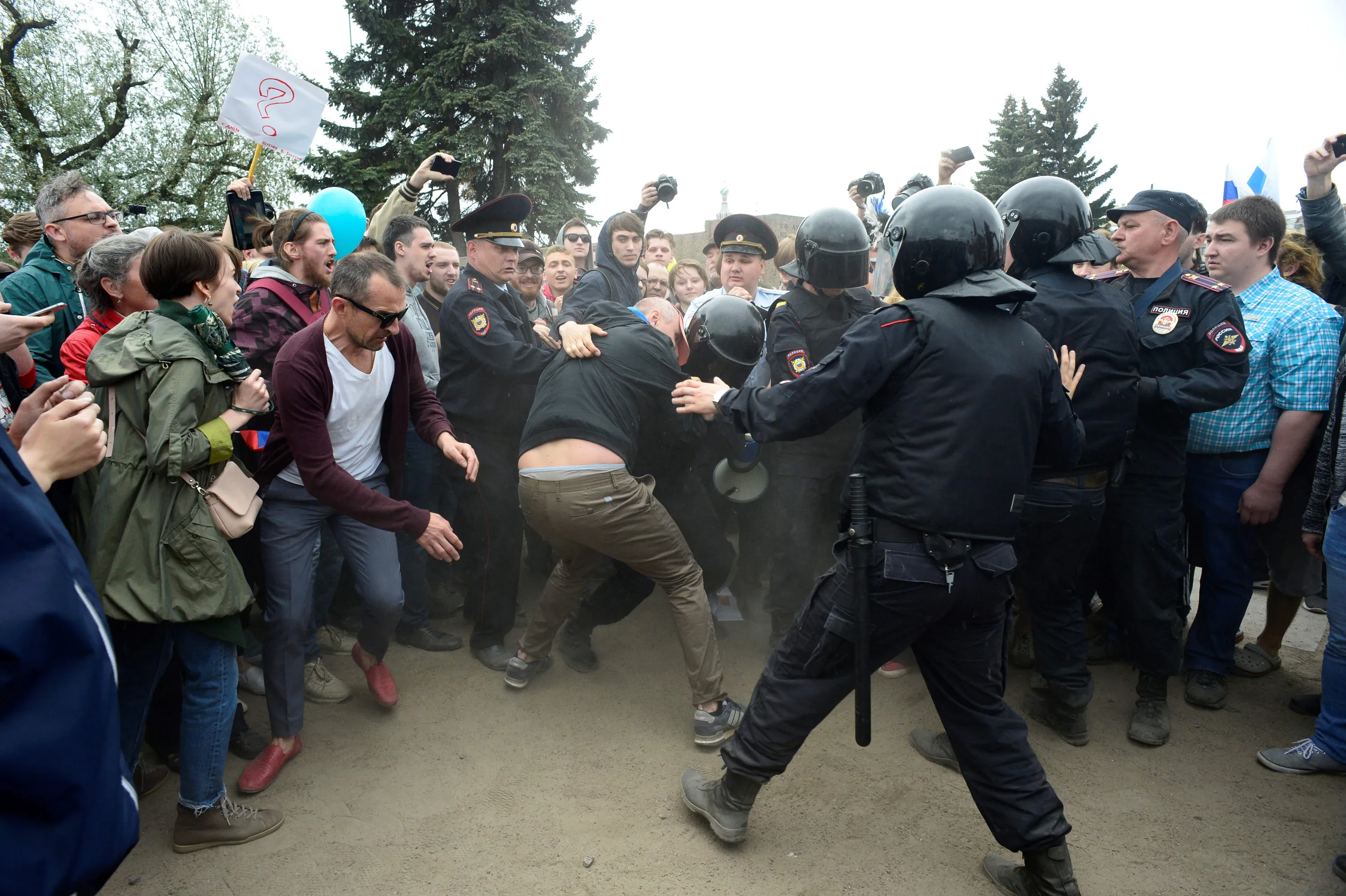 Police clash with participants of an unauthorised rally in St Petersburg, Russia on Monday, June 12, 2017. (Photo by Olga Maltseva/AFP Photo)