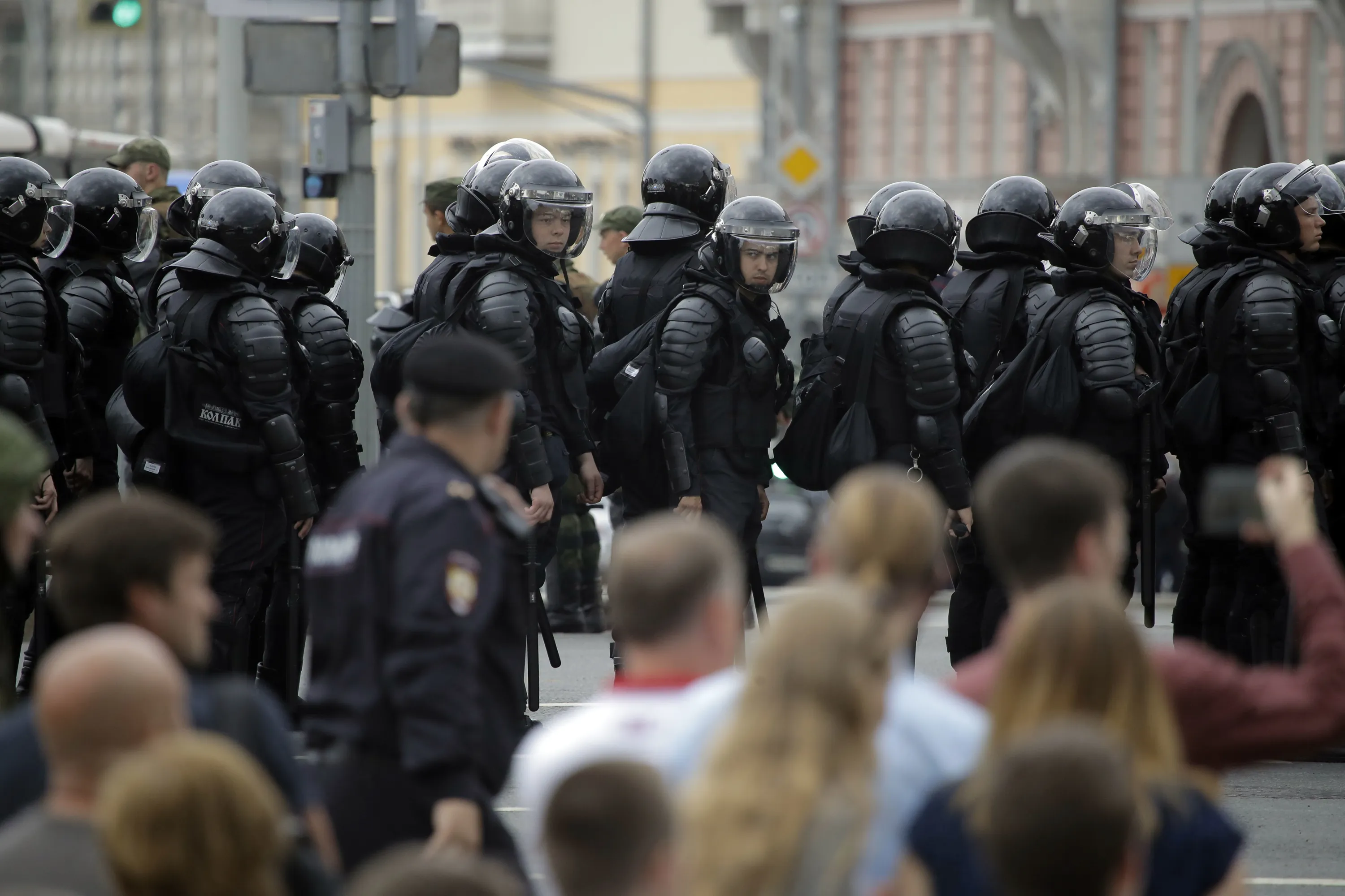 Police line up during a demonstration in downtown Moscow, Russia, Monday, June 12, 2017. (Photo by Pavel Golovkin/AP Photo)