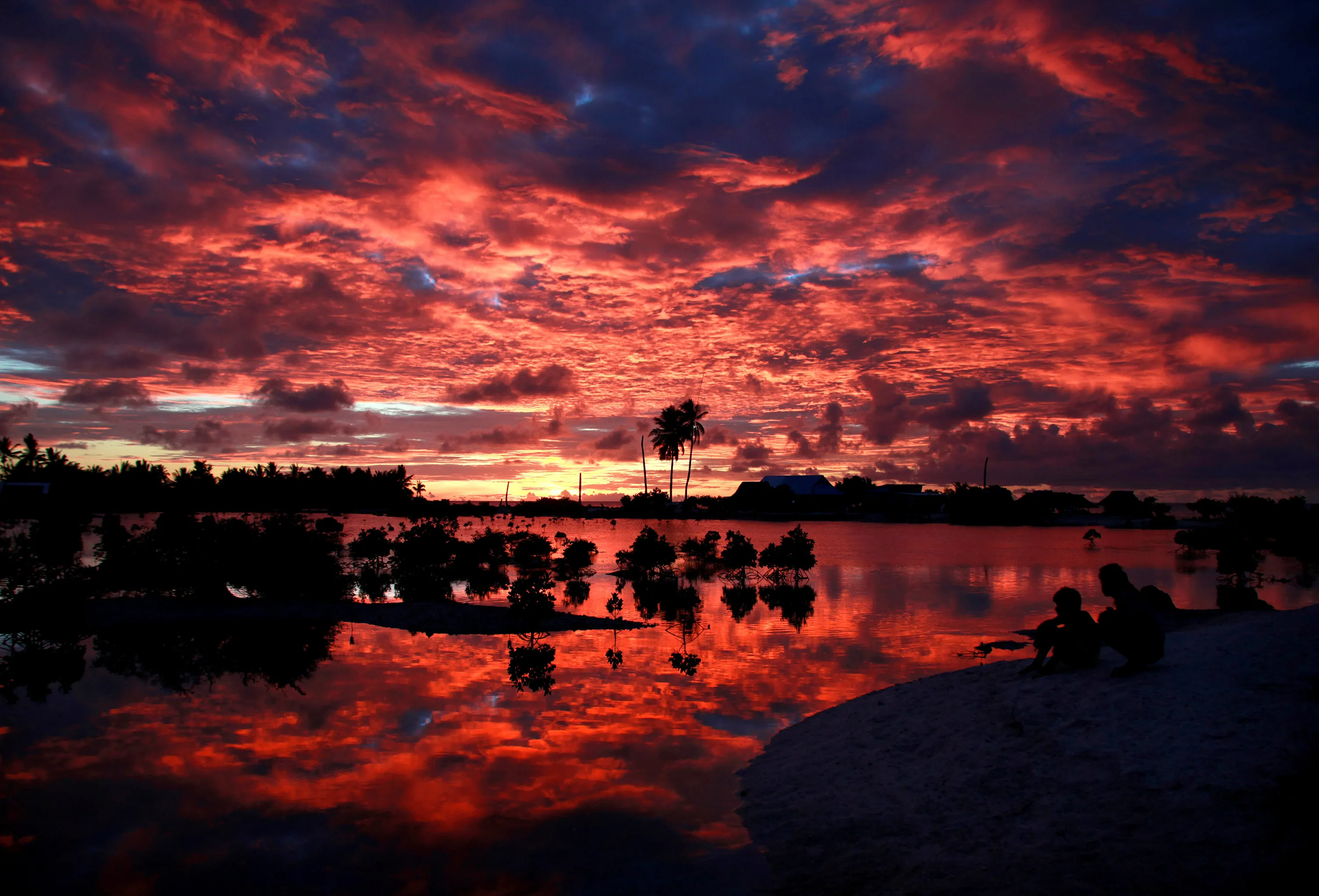 Villagers watch the sunset over a small lagoon near the village of Tangintebu on South Tarawa in the central Pacific island nation of Kiribati May 25, 2013. (Photo by David Gray/Reuters)