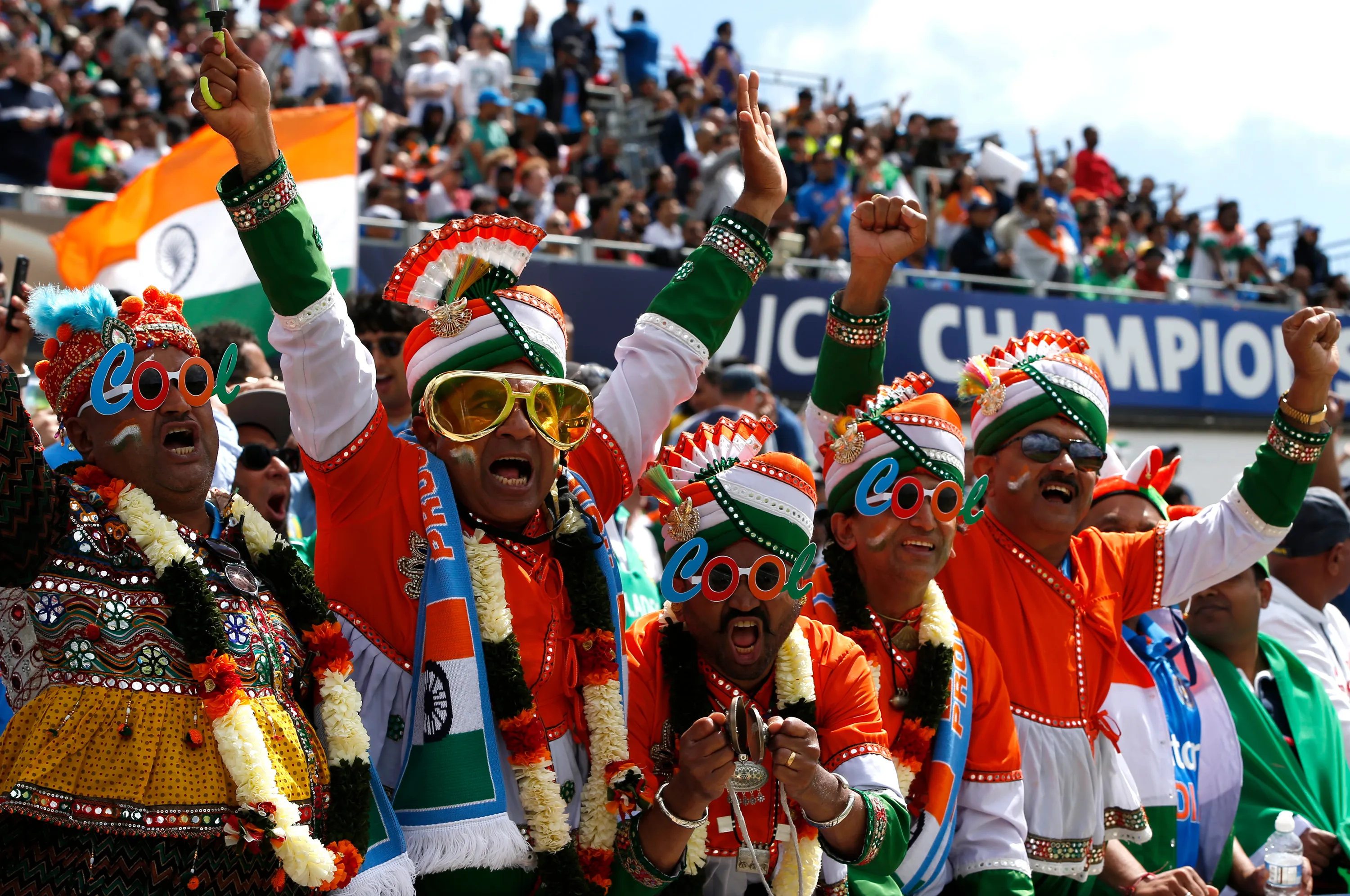 India cricket fans cheers on their team during the ICC Champions Trophy semi-final between Bangladesh and India at Edgbaston, Birmingham, England on June 15, 2017. (Photo by Paul Childs/Reuters)