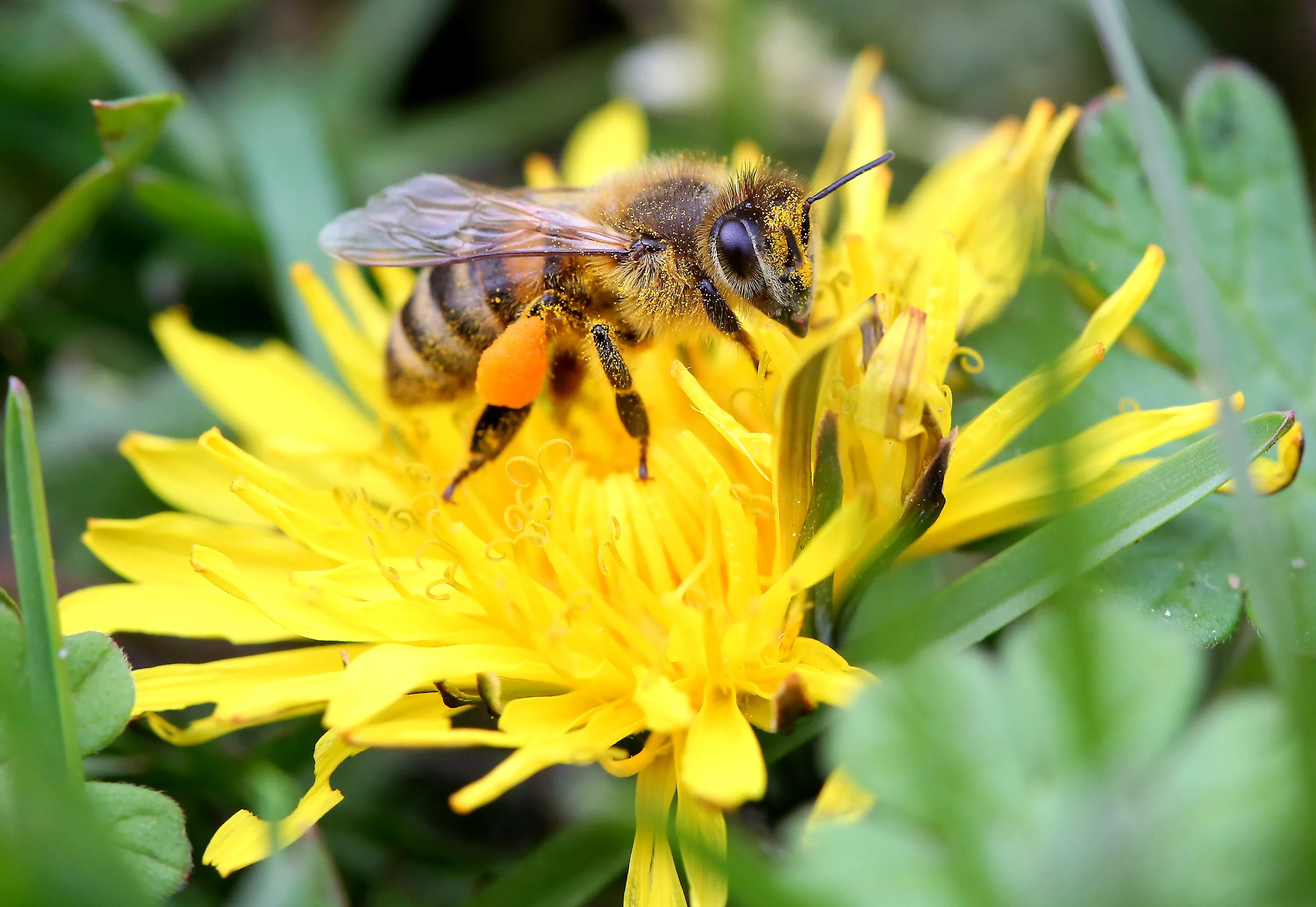 A bee collects nectar from a flower at the garden in Jankow Przygodzki, central-western Poland, 14 May 2017. (Photo by Tomasz Wojtasik/EPA)