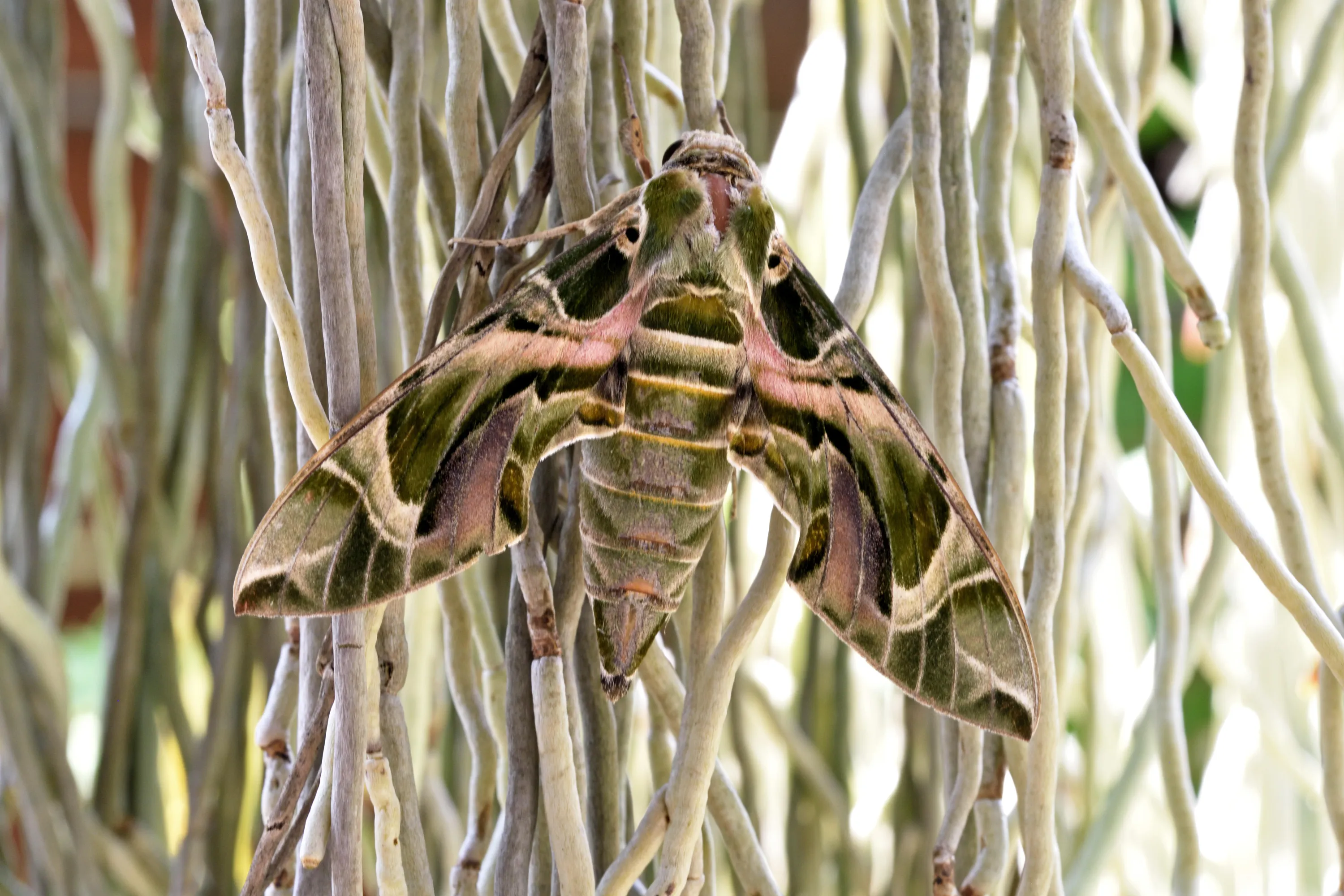 An adult oleander hawk moth rests on the aerial roots of orchid plants in a Bangkok garden in Thailand. (Photo by Robert Kennett/Alamy Stock Photo)