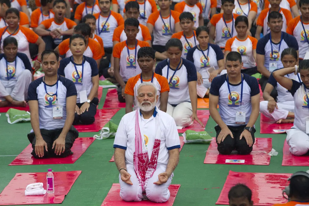 Indian Prime Minister Narendra Modi, center, performs yoga along with thousands of Indians in Lucknow, India, Wednesday, June 21, 2017. Millions of yoga enthusiasts across India take part in a mass yoga sessions to mark the third International Yoga Day which falls on June 21 every year. (Photo by Rajesh Kumar Singh/AP Photo)