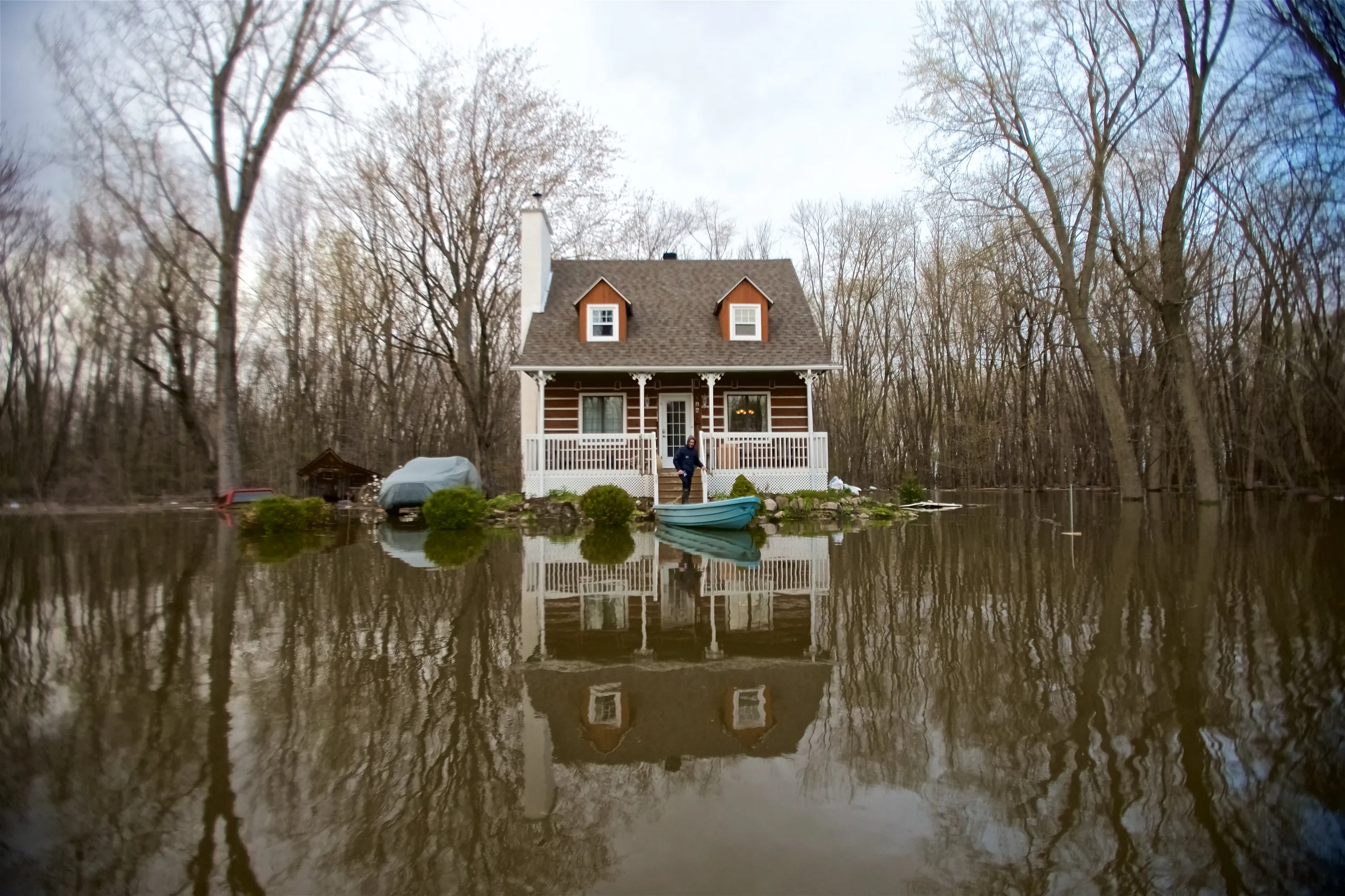 A house is surrounded by floodwaters in Pointe-Calumet, Quebec, on May 8. 2017. According to reports, floodwaters, resulting from heavy rains in the previous days, created more than 1,500 evacuees and affected some 2,500 homes and 427 roads, prompting the states of emergency across the province. Some 1,650 soldiers have been deployed to help flood-hit communities. (Photo by Valerie Blum/EPA)