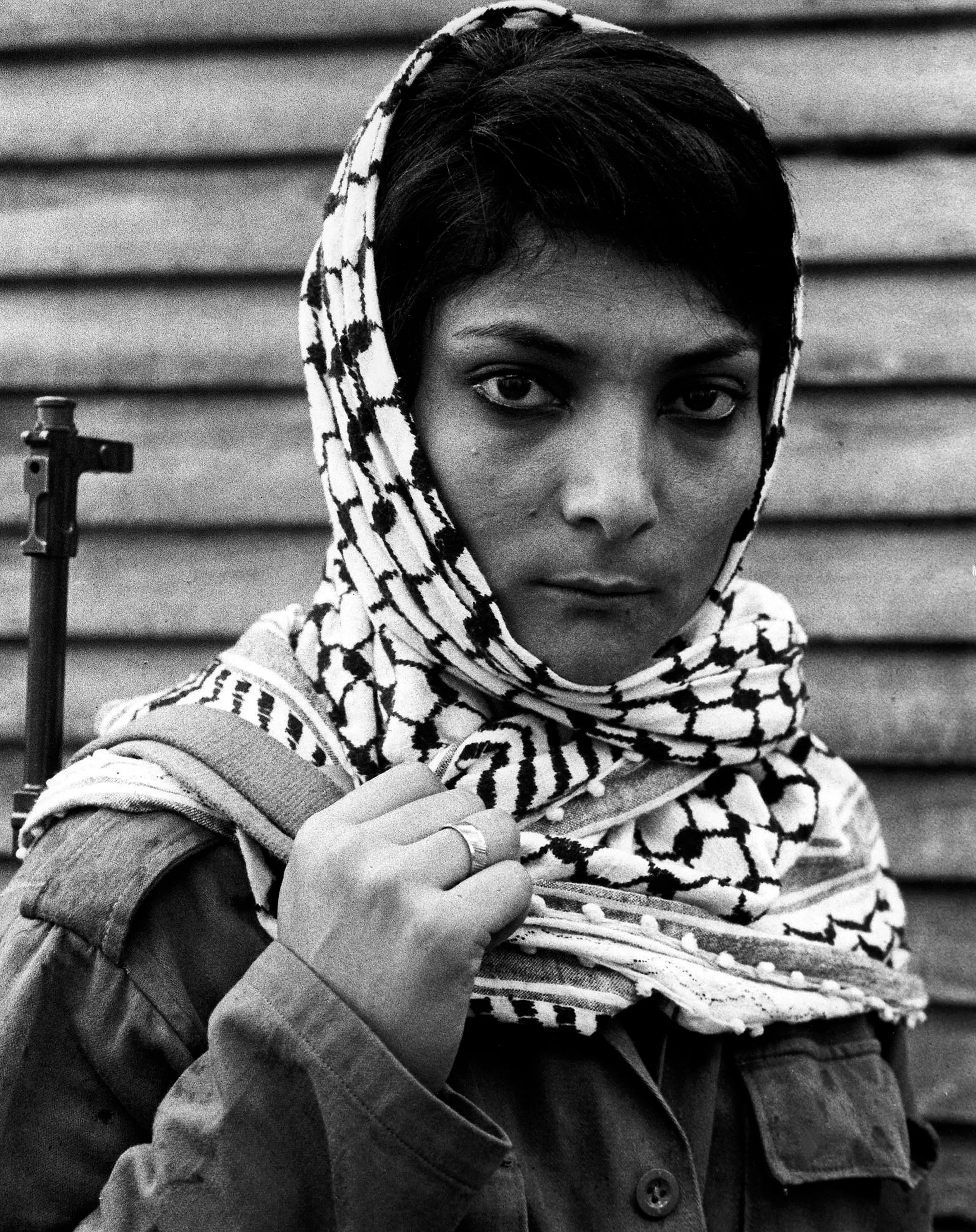 Leila Khaled, who hijacked a TWA airliner to Damascus in 1969, at a Palestinian refugee camp in Lebanon. 1970. (Photo by Eddie Adams/The Guardian)