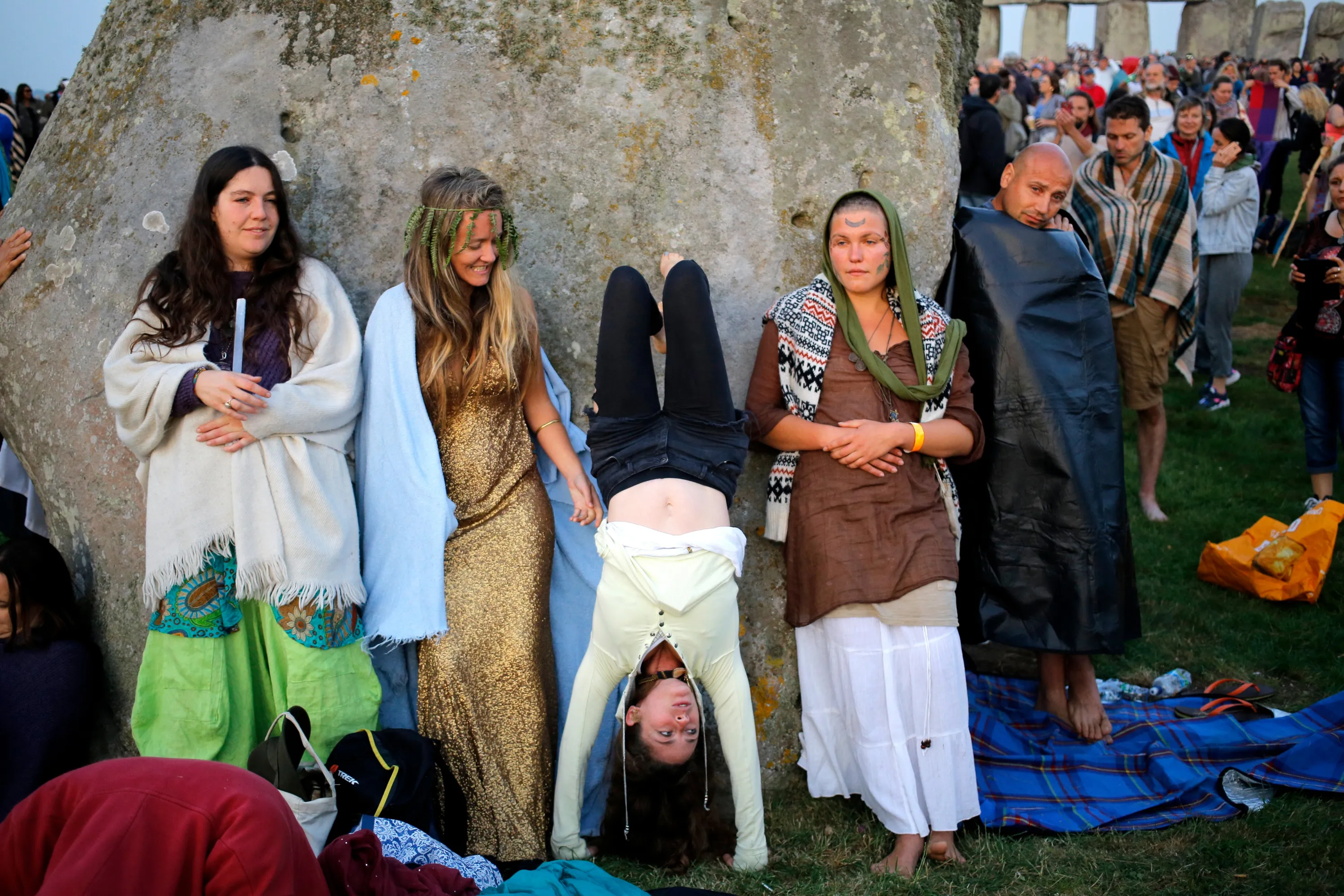 Revelers wait for the sun to rise on the summer solstice during the annual festival at Stonehenge, Salisbury, Britain, 21 June 2017. (Photo by Kim Ludbrook/EPA)