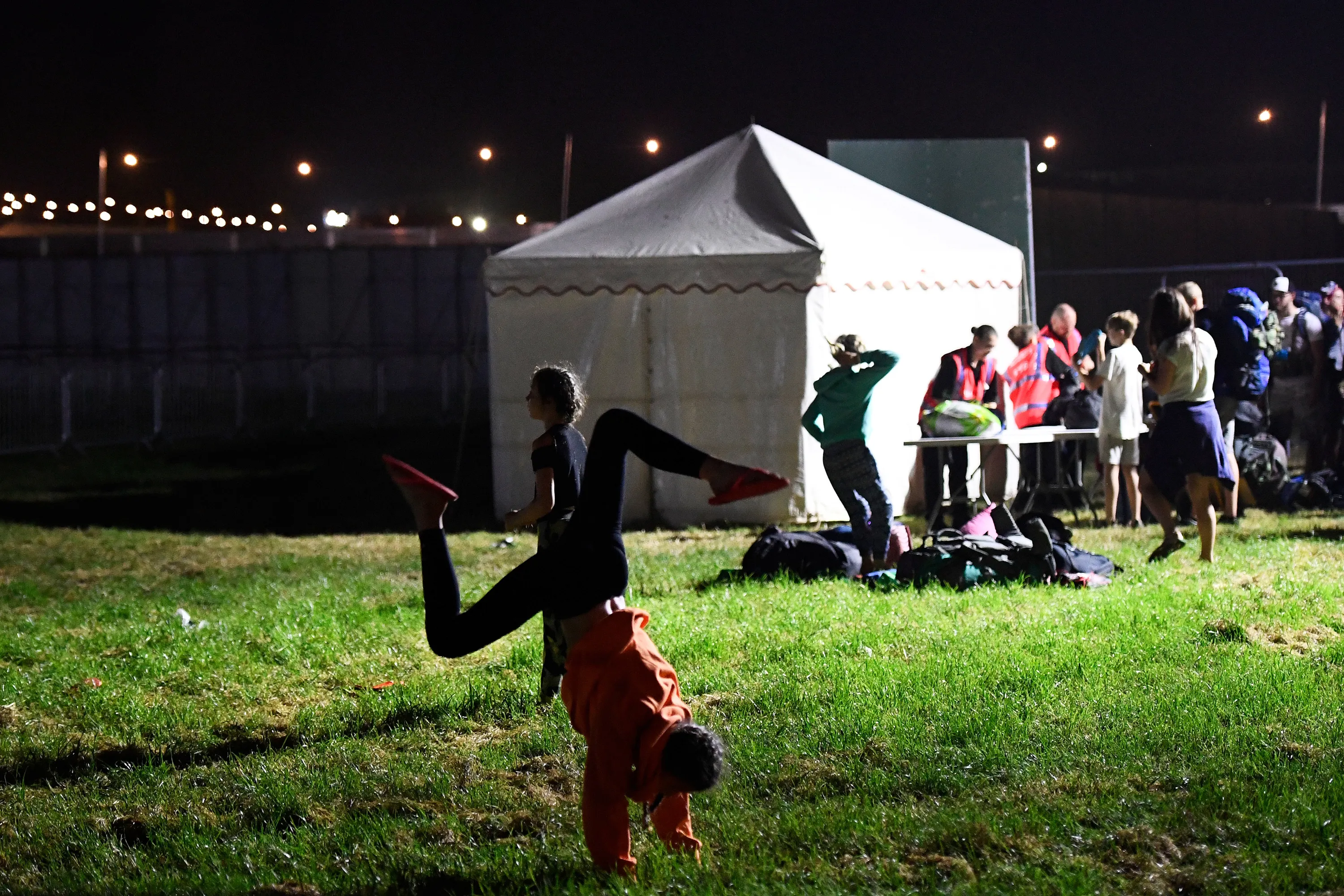 Revellers arrive at Worthy Farm in Somerset for the Glastonbury Festival of Music and Performing Arts on Worthy Farm near the village of Pilton in Somerset, South West England, on June 20, 2017. (Photo by Dylan Martinez/Reuters)