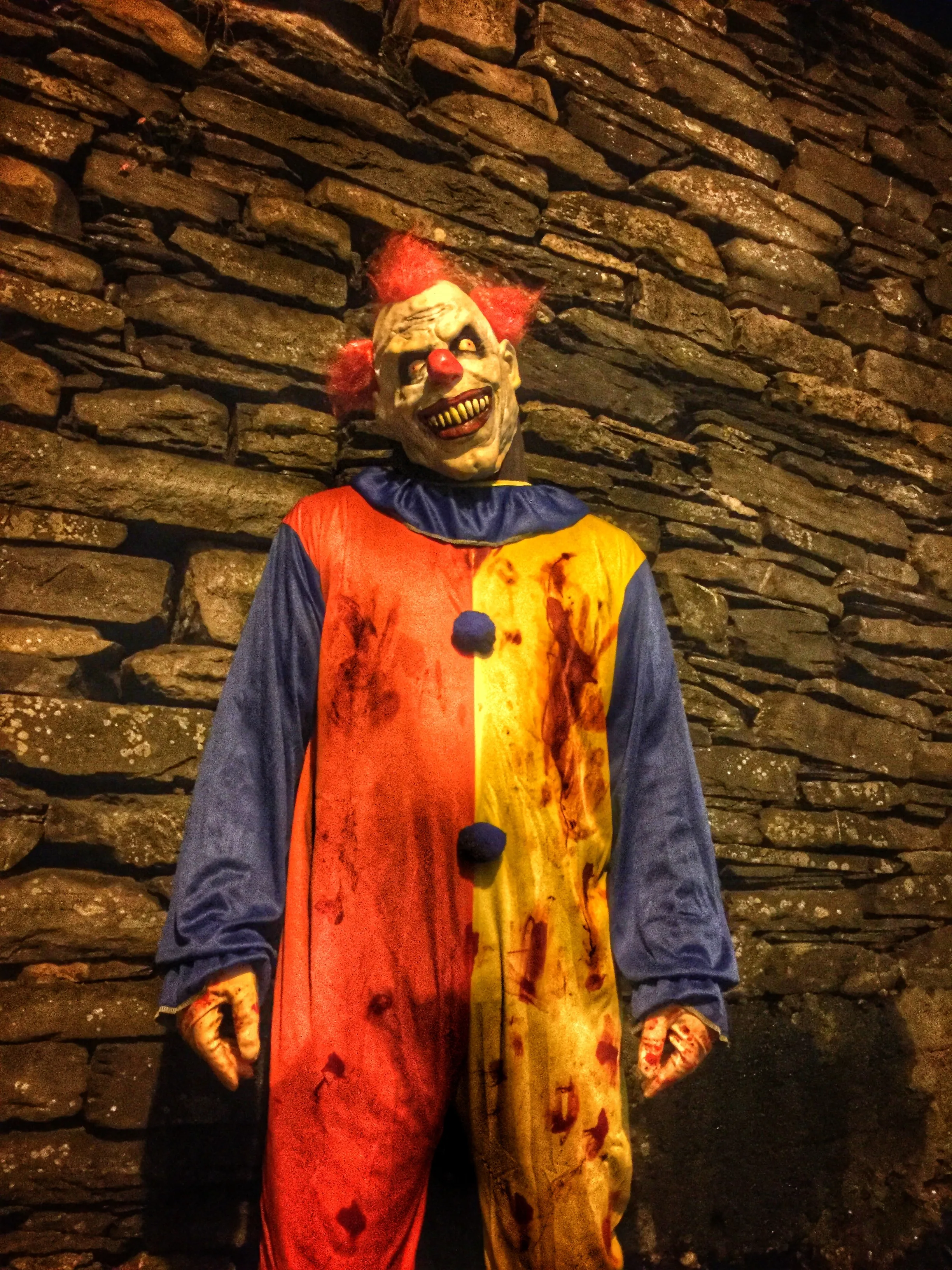 Man in clown costume against wall during Halloween. (Photo by Willi Schubert/Getty Images/EyeEm)