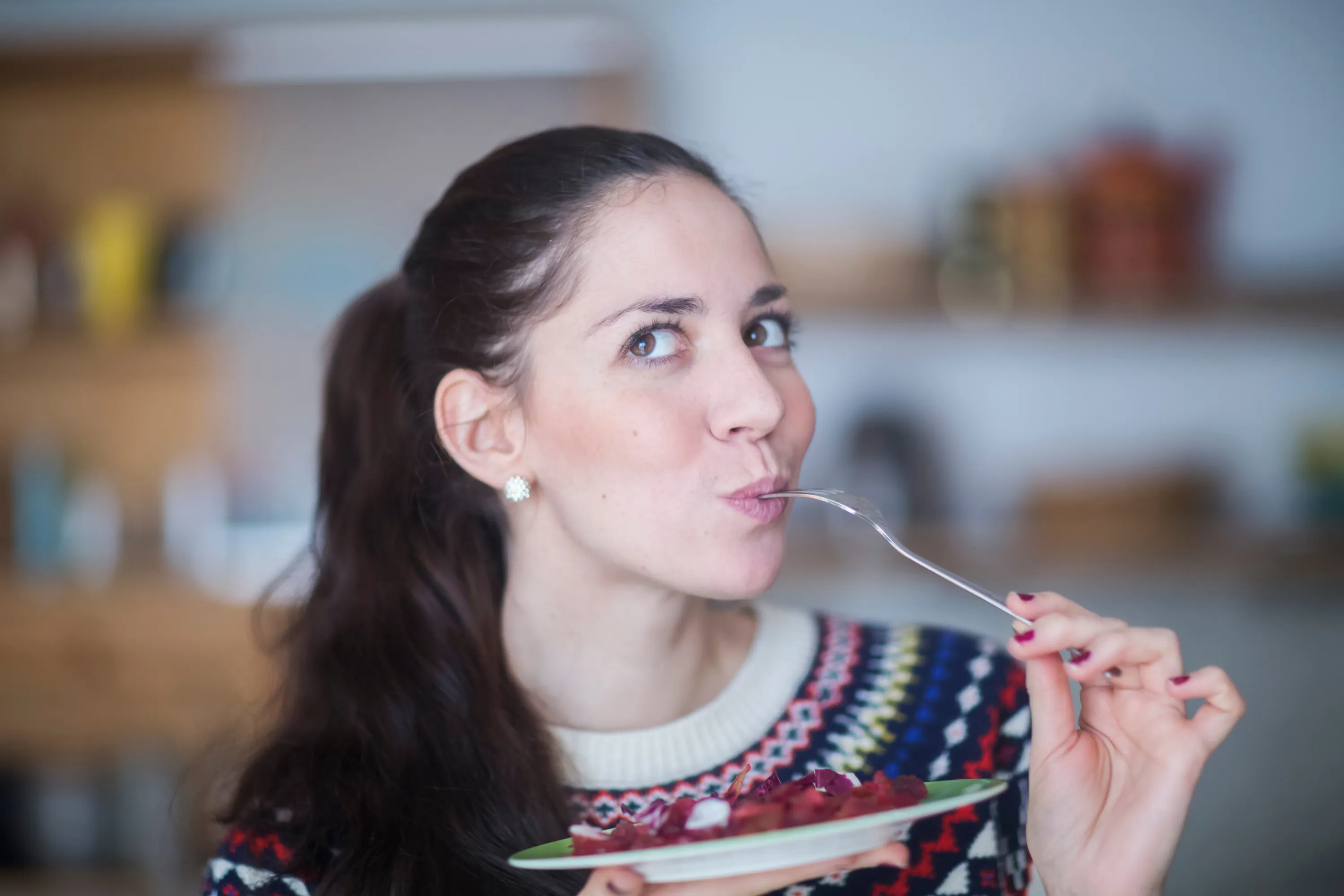 Portrait of eating woman. (Photo by Westend61/Getty Images)