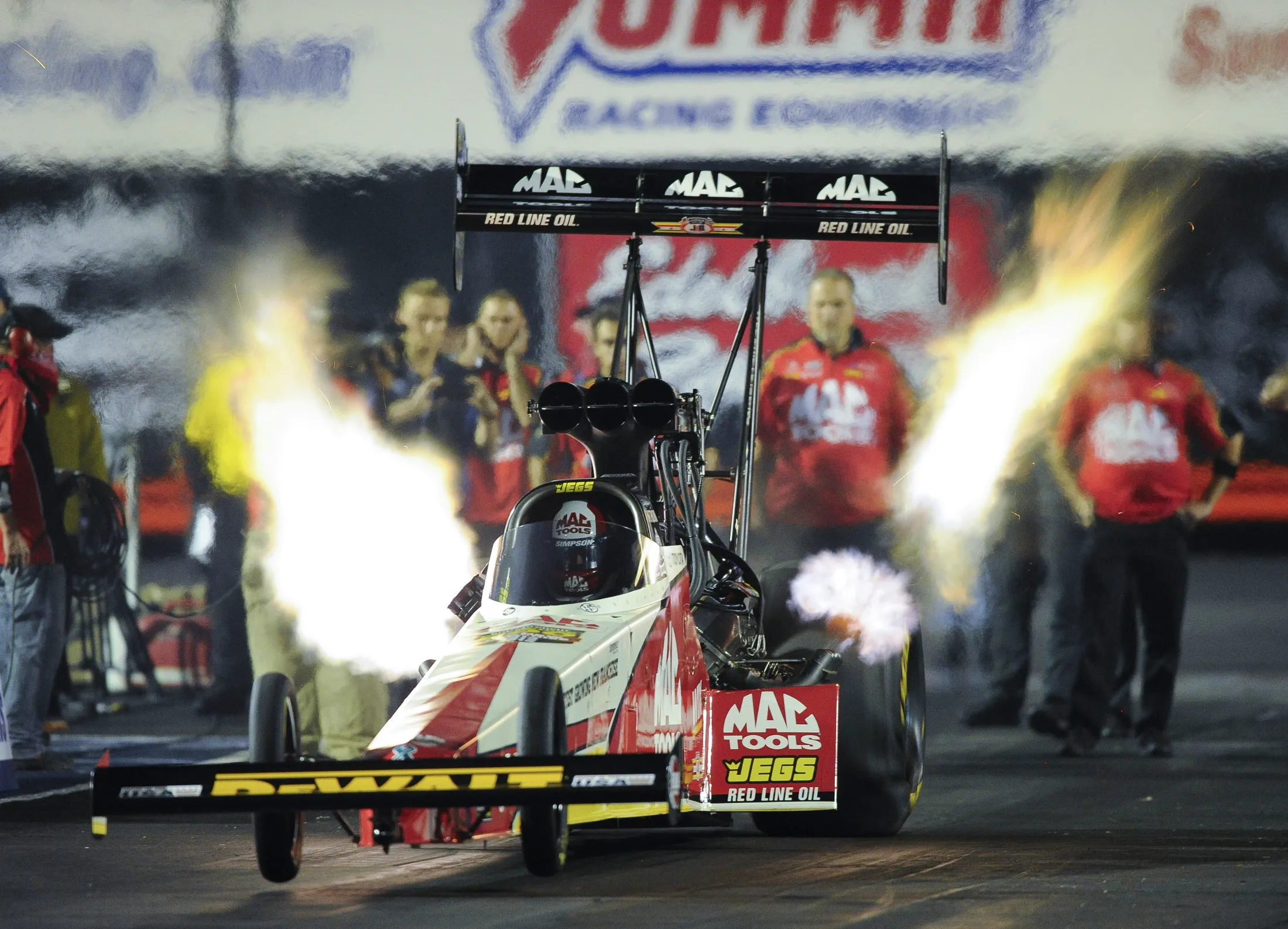 In this photo provided by NHRA, Doug Kalitta drives in Top Fuel qualifying Friday, June 23, 2017, at the Summit Racing Equipment NHRA Nationals in Norwalk, Ohio. Kalitta leads the Top Fuel category after the first day of qualifying. (Photo by Teresa Long/NHRA via AP Photo)