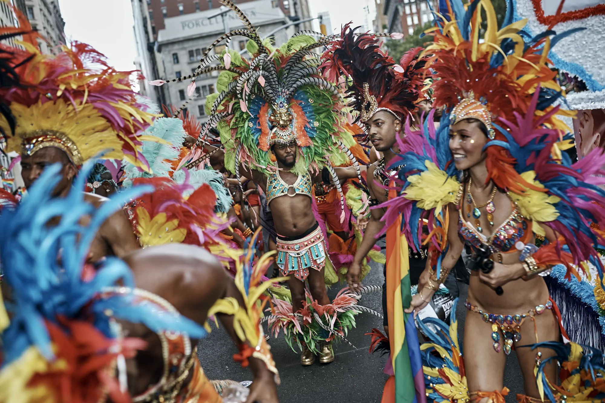 Members of the Caribbean pride pause during the New York City Pride Parade on Sunday, June 25, 2017, in New York. (Photo by Andres Kudacki/AP Photo)