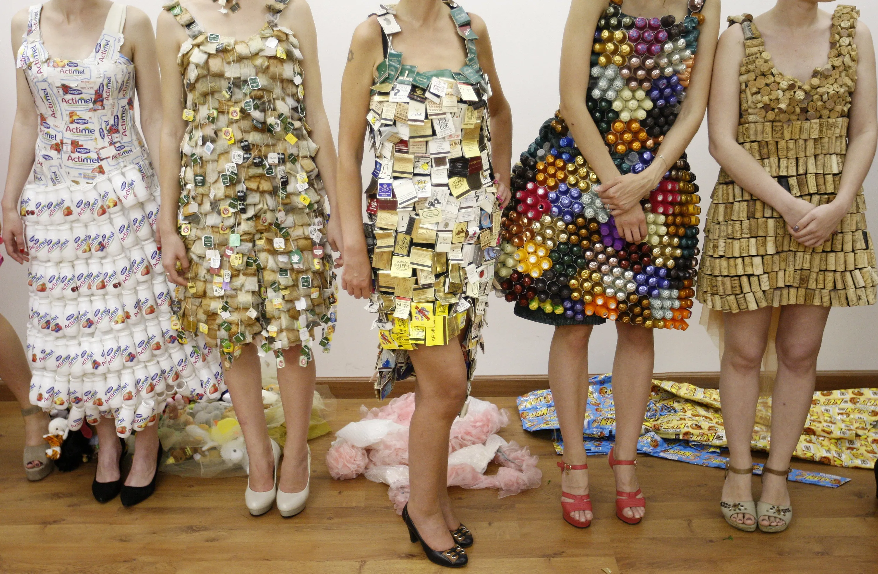 Models wait backstage, during an eco-clothing fashion show from recycled materials by French designer Isagus Toche, in Kiev, Ukraine, on 23 June 2017. (Photo by Stepan Franko/EPA/EFE)