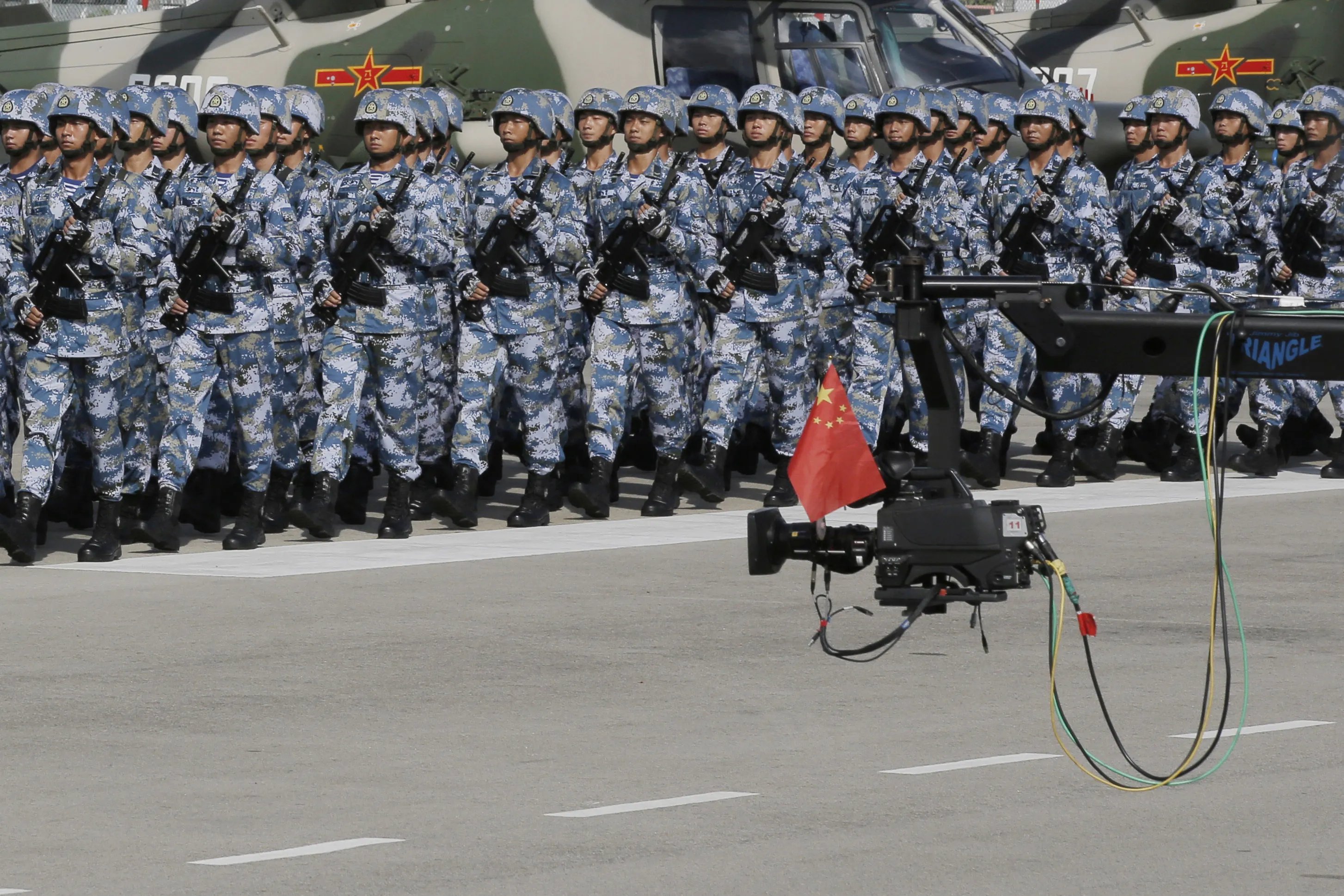 Chinese soldiers march as Chinese President Xi Jinping inspects the troops of People's Liberation Army (PLA) Hong Kong Garrison at the Shek Kong Barracks in Hong Kong, Friday, June 30, 2017. (Photo by Kin Cheung/AP Photo)
