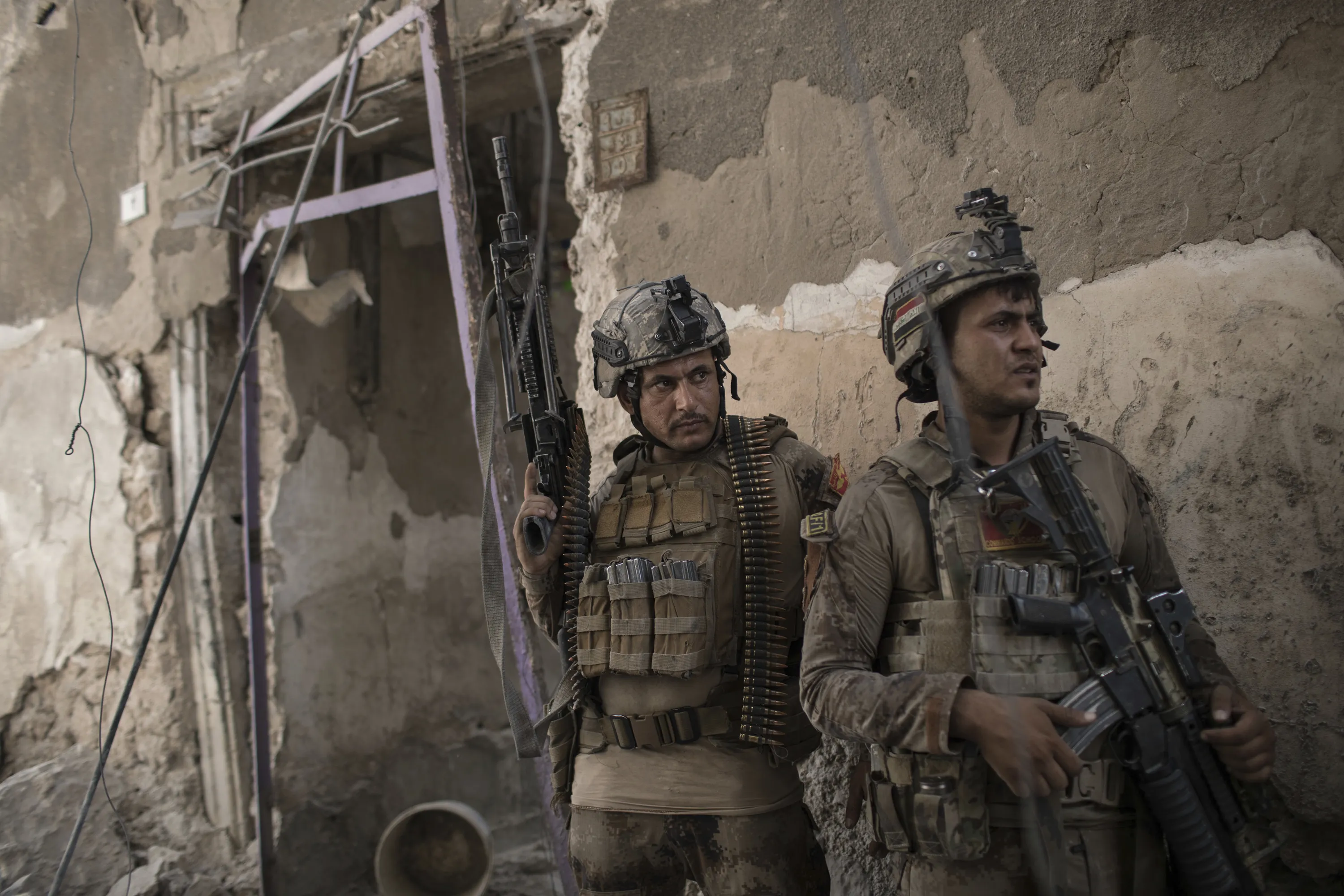 Iraqi Special Forces soldiers gather before advancing against Islamic State militants in the Old City of Mosul, Iraq, Sunday, July 2, 2017. (Photo by Felipe Dana/AP Photo)