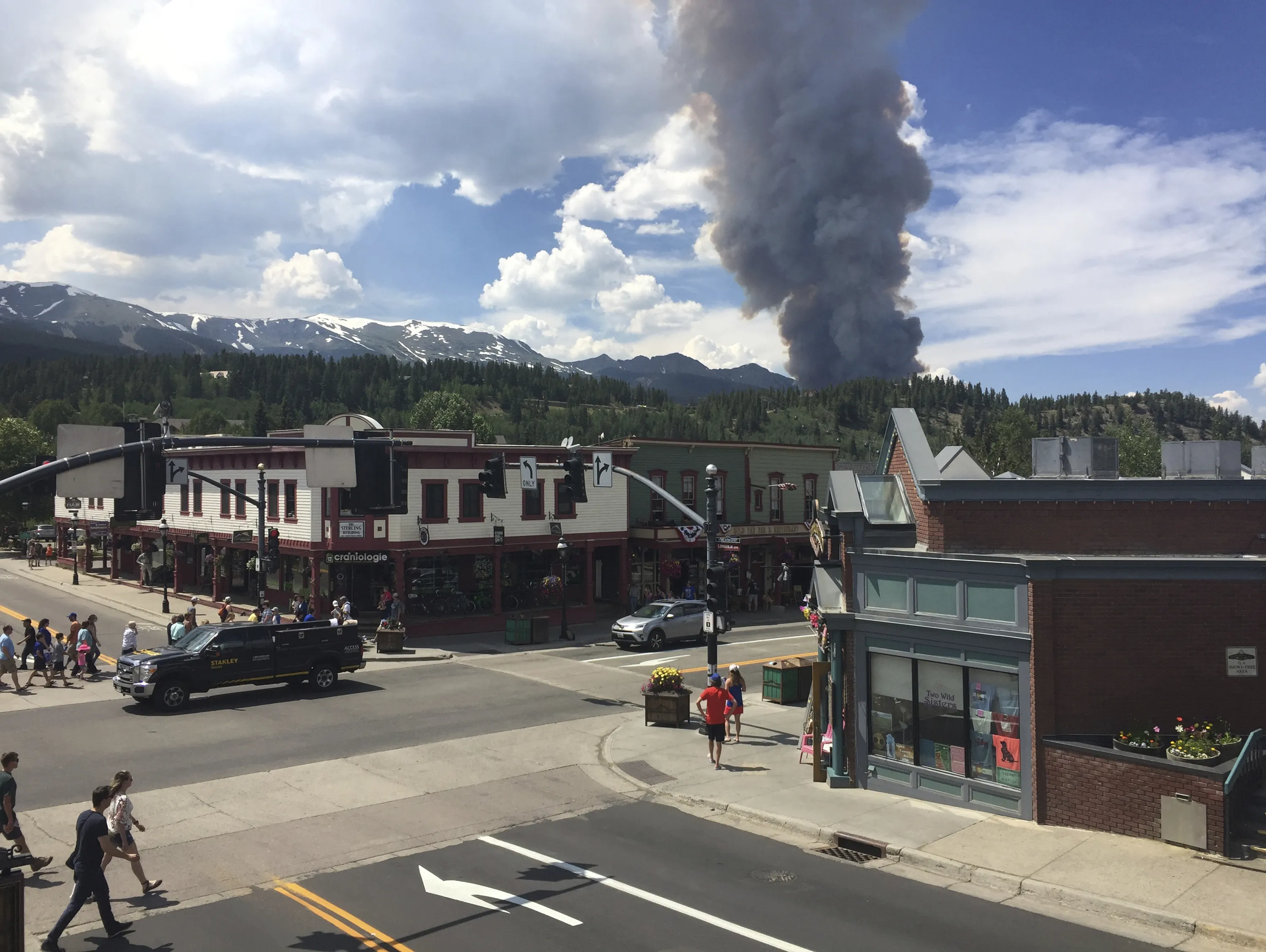 This Wednesday, July 5, 2017, photo provided by Tony Cooper shows a wildfire burning near Breckenridge, Colo. Firefighters were working Thursday to keep a wildfire that's forced the evacuation of hundreds of people from spreading toward homes near Colorado's Breckenridge Ski Resort and the nearby historic town. (Photo by Tony Cooper via AP Photo)