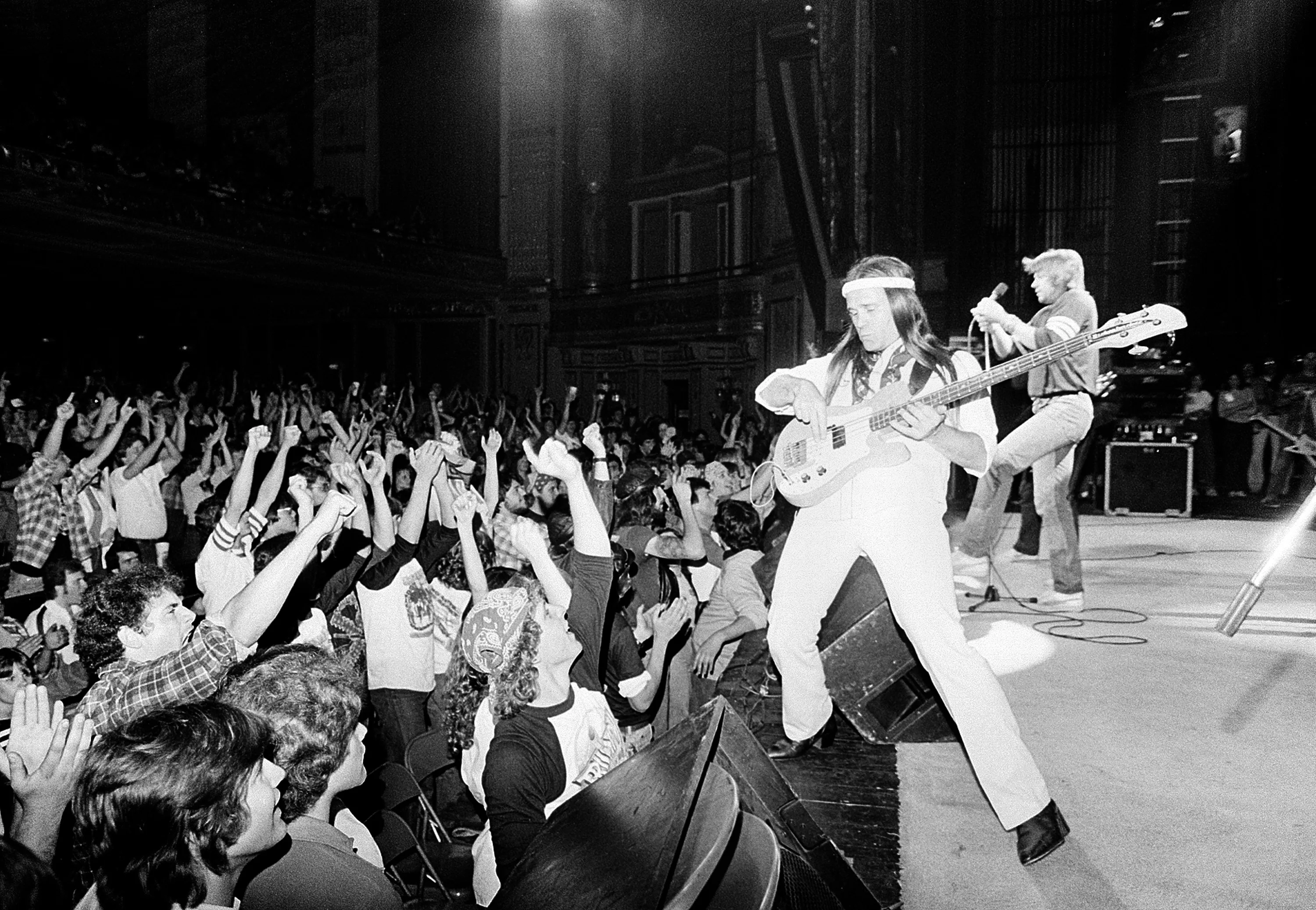 The rock group Molly Hatchet performs for 2,500 Pittsburgh rock fans at a benefit concert for steelworkers' food bank in Pittsburgh, Pa., June 2, 1983. Playing the bass guitar is Riff West, and behind him is Danny Joe Brown. Officials say $16,000 was raised to help feed jobless members of the United Steelworkers Local 1397 in Homestead, Pennsylvania. (Photo by Gene J. Puskar/AP Photo)
