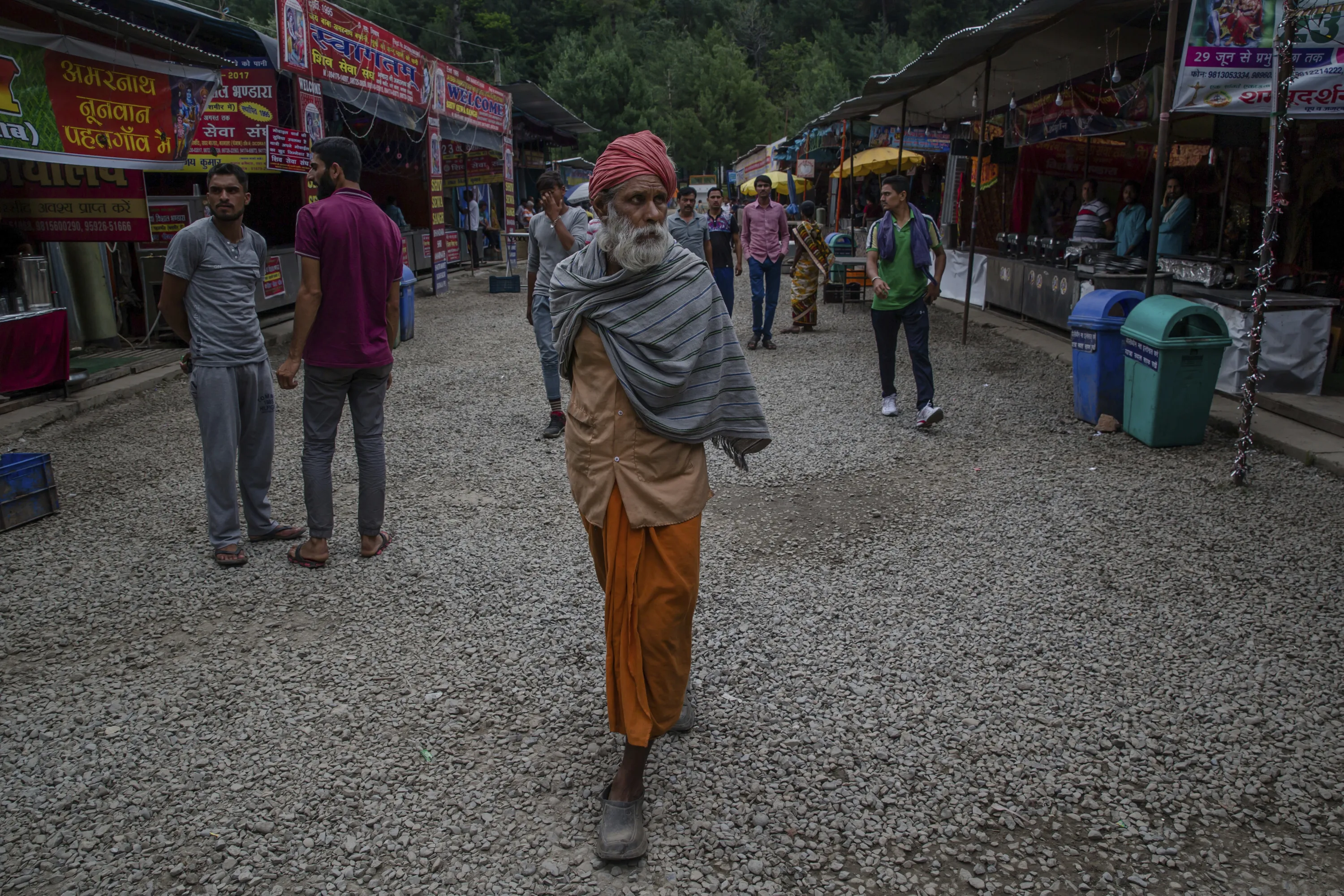 Indian pilgrims stroll inside a base camp after returning from the annual summer Hindu pilgrimage to the Amarnath Shrine in Pahalgam, about 100 Kilometers south of Srinagar, Indian controlled Kashmir, Tuesday, July 11, 2017. (Photo by Dar Yasin/AP Photo)