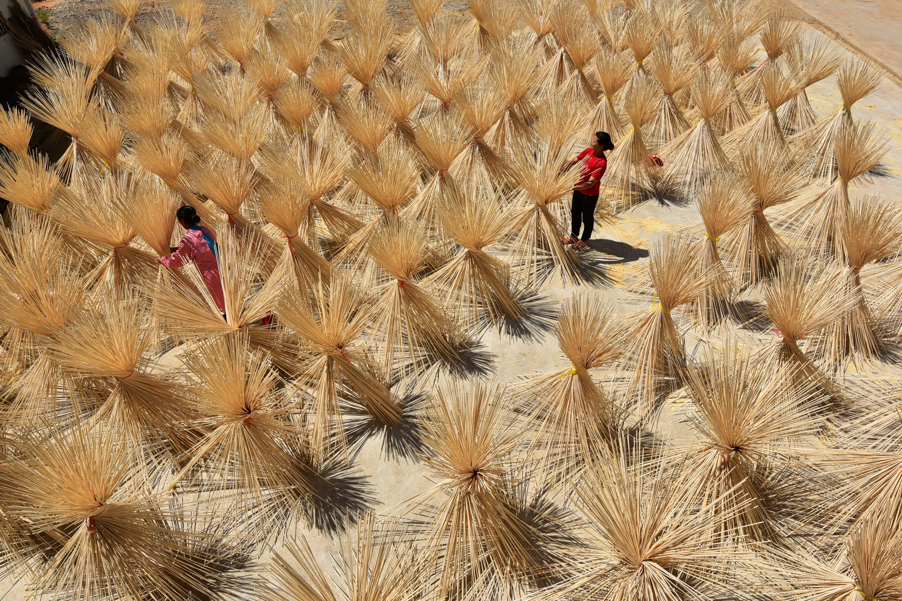 Employees from a bamboo industry company dry semi-finished bamboo chopsticks in a village in Xingan county, Jiangxi province, China July 16, 2017. (Photo by Reuters/China Stringer Network)