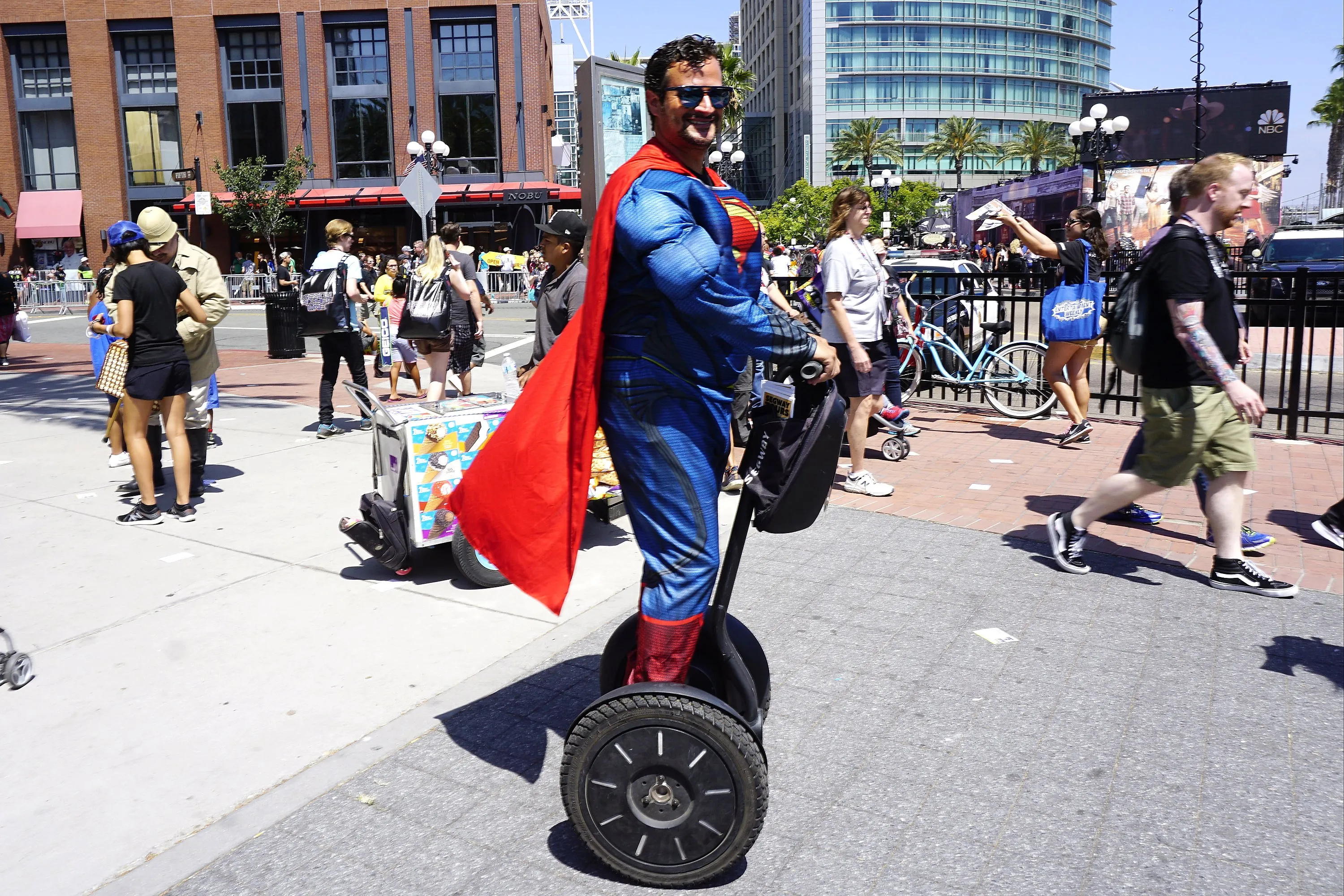 Superman cosplayer Kenneth Lipman rides on a Segway during Comic Con in San Diego, California, USA, 20 July 2017. (Photo by Nina Prommer/EPA)