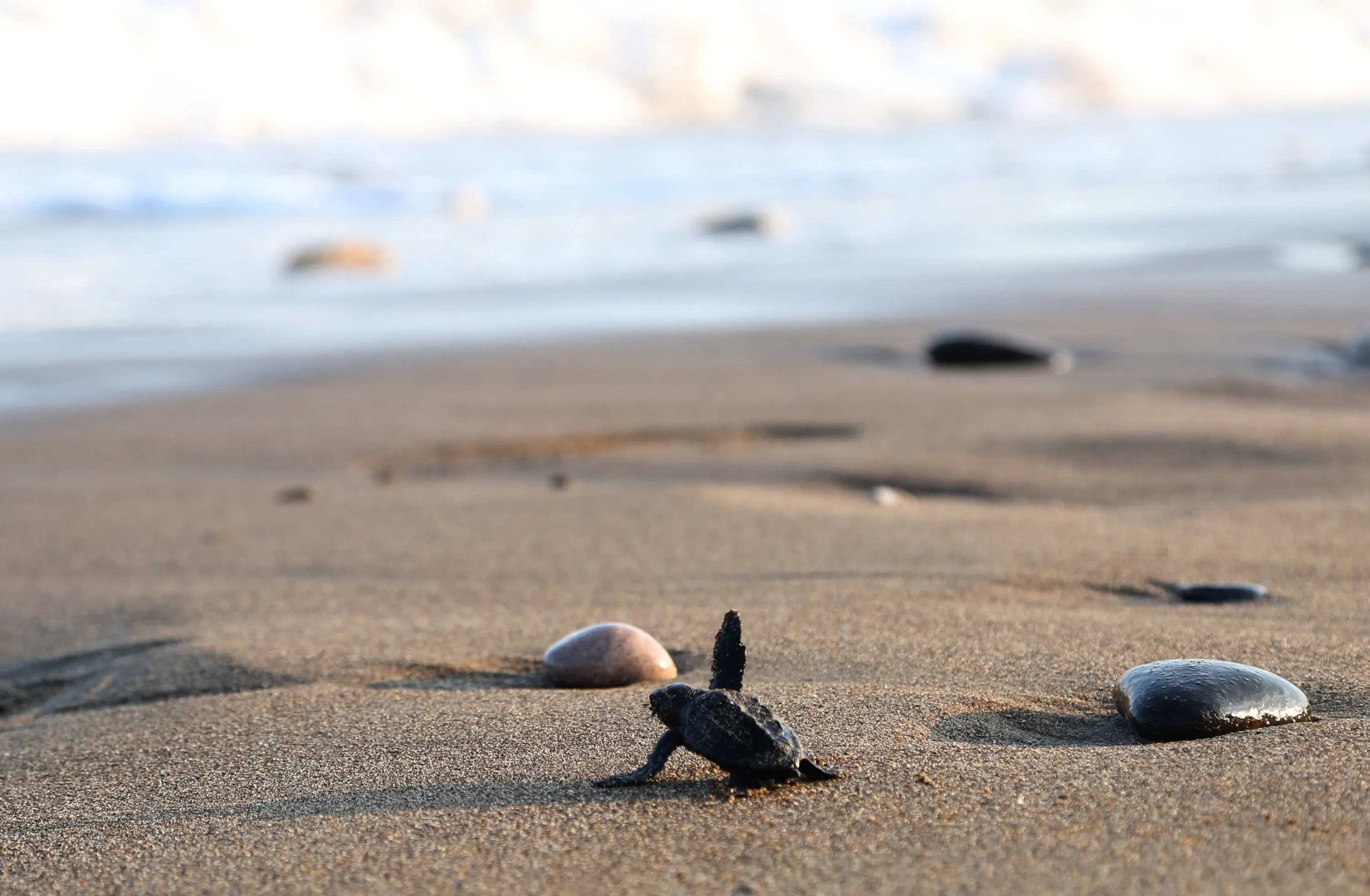 A newly hatched Loggerhead turtle (Caretta Caretta) makes its way to the Mediterranean Sea at Davultepe District's beach in Mersin, Turkey on July 19, 2017. Caretta Carettas are under protection due to high risk of their extinction. (Photo by Mustafa Gungor/Anadolu Agency/Getty Images)