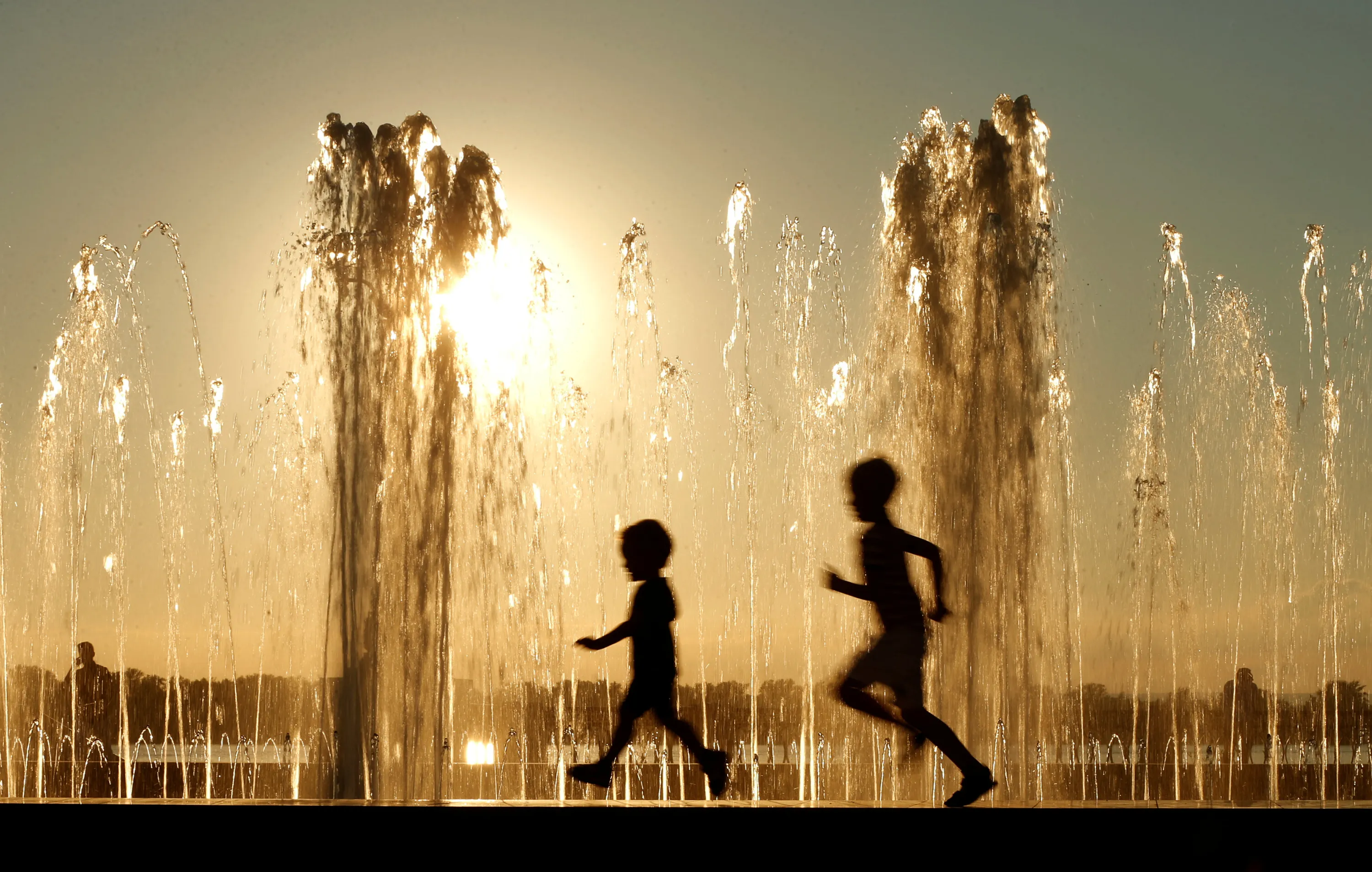 Children are silhouetted in front of a fountain during sunset in Samara, Russia July 18, 2017. (Photo by David Mdzinarishvili/Reuters)