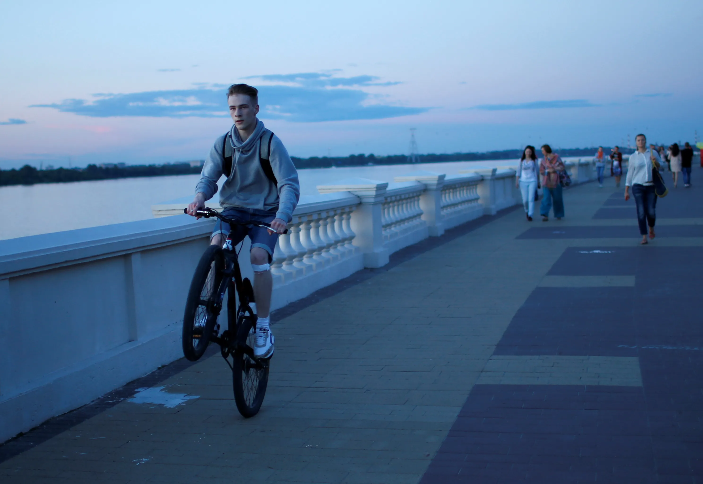 A man rides a bike along an embankment of Volga river in Nizhny Novgorod, Russia on July 11, 2017. (Photo by David Mdzinarishvili/Reuters)