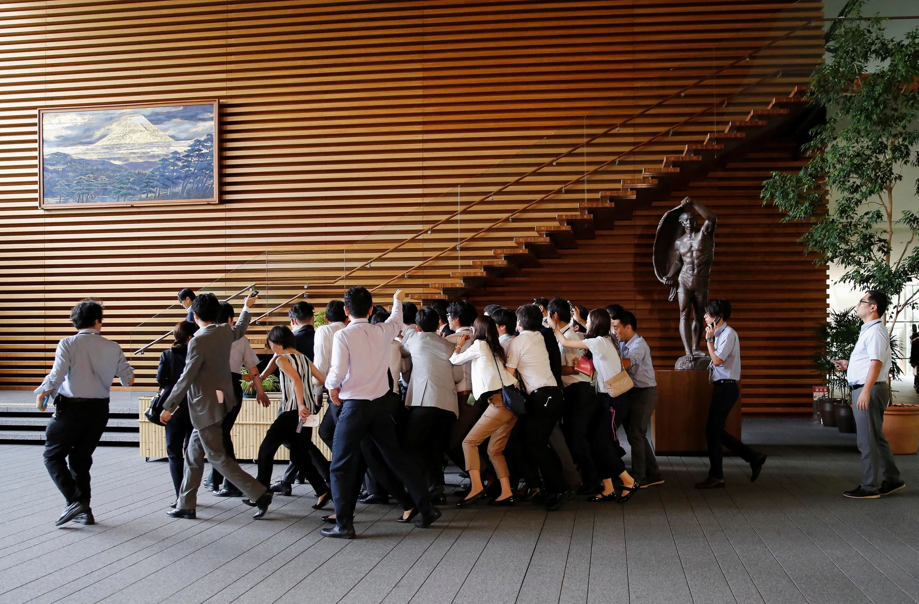 The defence minister Tomomi Inada is surrounded by reporters as she leaves the official residence of the prime minister, Shinzo Abe in Tokyo, Japan July 28, 2017. (Photo by Toru Hanai/Reuters)