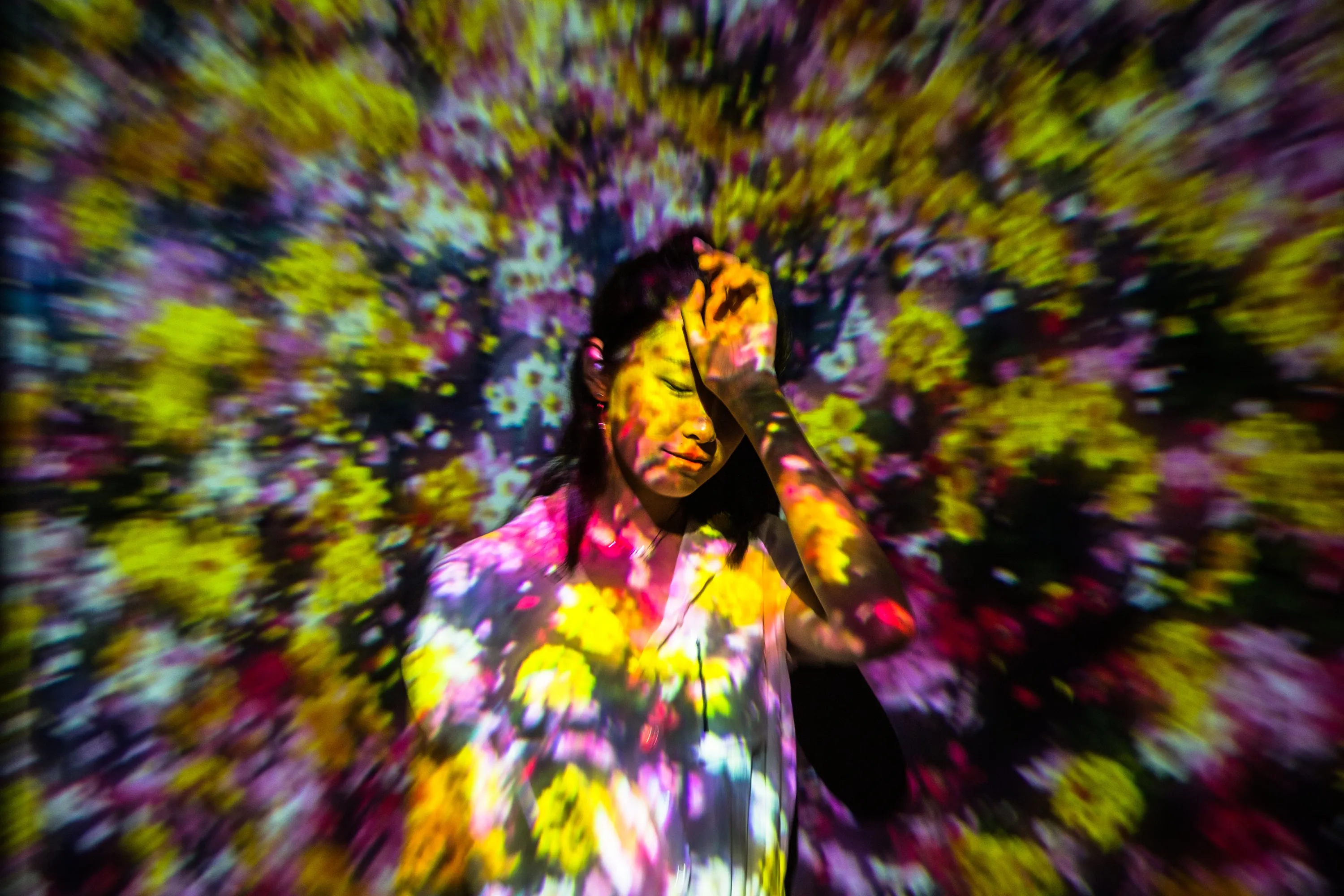 A Chinese woman poses for photos during the Living Digital Forest and Future Park exhibition at 798 Art District, in Beijing, China, 04 August 2017. The Living Digital Forest and Future Park exhibition by teamLab group presents the large-scale interactive digital installation and runs from 20 May to 10 October 2017. (Photo by Roman Pilipey/EPA)