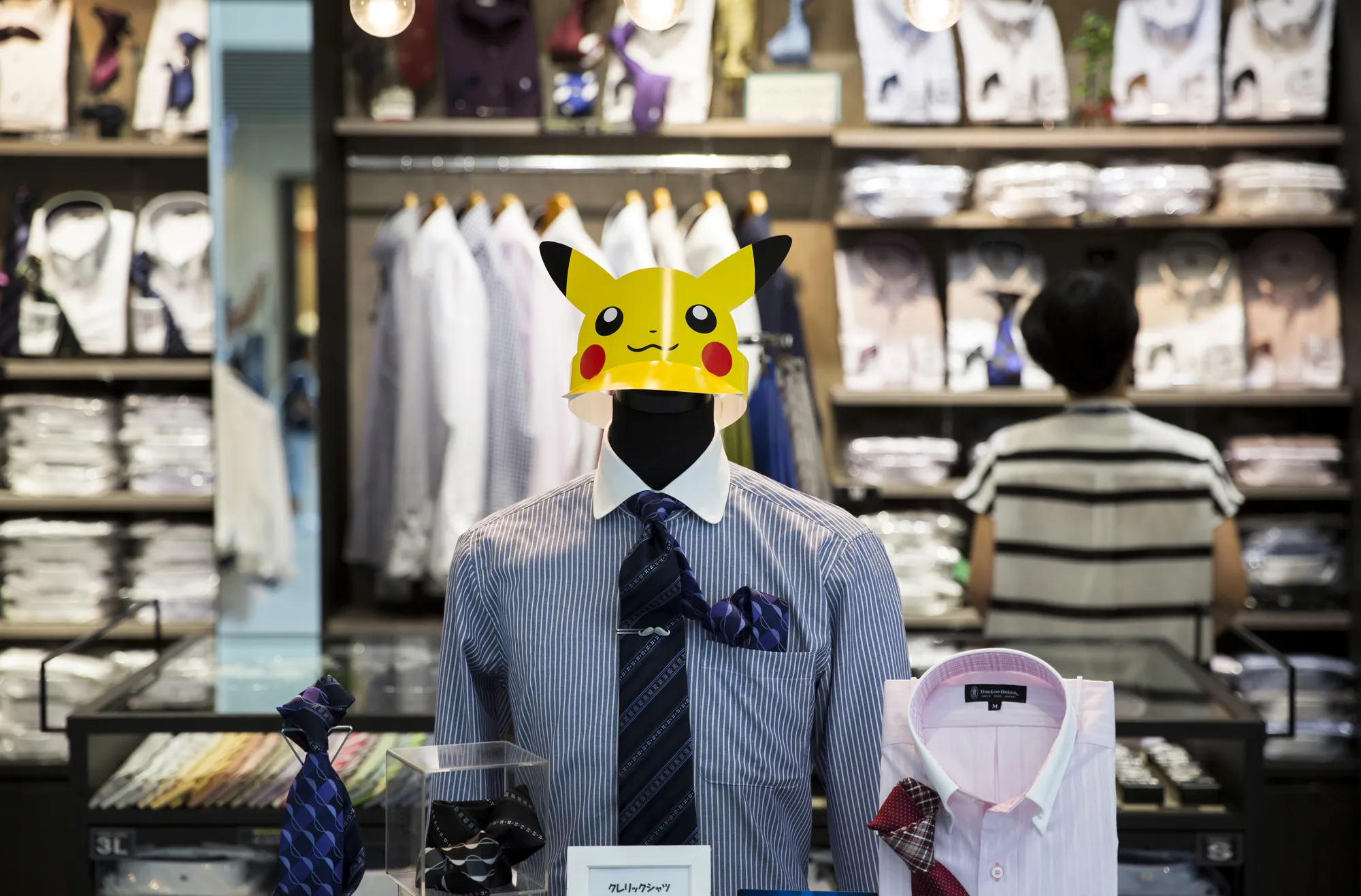 A Pikachu shaped sun visor is seen on a mannequin displaying a shirt and a tie at a store during the Pikachu Outbreak event hosted by The Pokemon Co. on August 9, 2017 in Yokohama, Kanagawa, Japan. (Photo by Tomohiro Ohsumi/Getty Images)